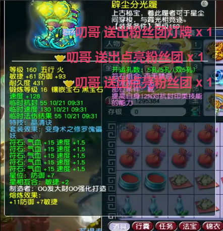 大家好!「烤鸭看西游」每天为你带来不一样的故事。 1、苏堤春晓九神冠军化生寺展示 我九 夺冠硬件展示 ?12段 160级 凝滞武器. ?140级愤怒破甲腰带 14段 160级笑里藏刀治疗+10的男头. 160级罗汉金钟项链 160级 305 伯牙绝弦男衣服 160级晶清诀鞋子. 120级六速度 2、玩家抓鬼喜提70简易晶清鞋 2玩家抓鬼 喜提 70 简易晶清诀鞋子,也是发财. 叶子猪梦幻西游玩家群:1群 325703083 (2000人),2群: 330102322 (千人);3群: 424986787 (游戏疑难解答);4群: 330518295 (商人物价);5群: 1063086037 (疑难解答);6群: 1045753197 (春心萌动);7群: 787195090 (活跃互动);8群: 720665628 (全民PK) [编辑:百晓生]