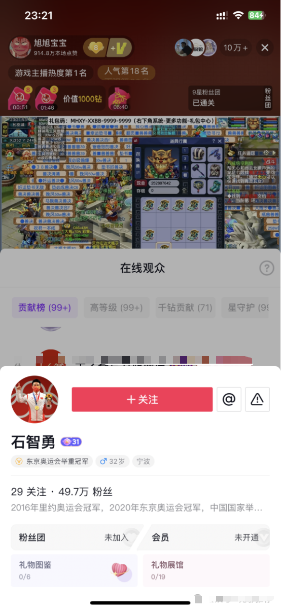 梦幻西游旭旭宝宝炸第一笑里鞋,吸引奥运冠军石智勇围观