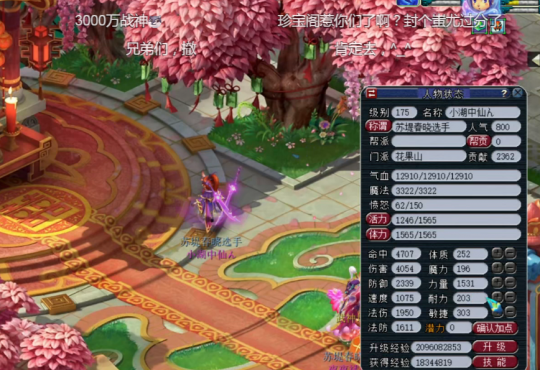 梦幻西游服战冠军花果山曝光4054伤属性图,建邺城飞扬哥鉴出140罗汉项链