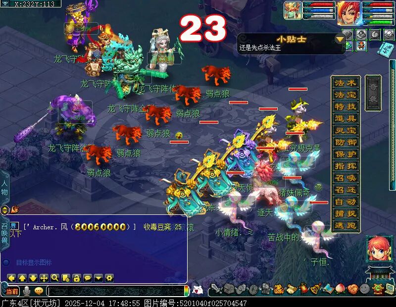 嘉年华活动持续进行时,本周开放的是云垂阵、龙飞阵、虎翼阵三个阵法,因为挑战成本高,笔者潜意识就把这个玩法忽略了,但是有玩家问起,我就去测了一下,感觉比第一周要简单一点,记得选个大克对面的阵法再去挑战。 挑战云垂阵。 主怪:被封印了,解封后只会普攻。 净瓶女娲:女儿,会雨落寒沙/水清被封单位。 炎魔神:神木,会落叶萧萧/荆棘舞。 雨师:方寸,会失心符//水清被封单位。 鼠先锋:会烈火。 正如同小贴士所说,因为怪物多法系,带罗汉更易通关,不过水清、晶清特技也必不可少。 挑战龙飞阵。 主怪:狮驼,变身后狮搏。 净瓶女娲:中速女儿,会似玉生香。 大力金刚:凌波,会浪涌。 金身罗汉:中速化生,会金刚护体。 炎魔神:龙宫,会龙卷雨击,秒10。 狼:会弱点击破。 系统提示先点杀法系,不过个人觉得,起个罗汉就能废掉法系了,倒是前排狼威胁更大一些。 挑战虎翼阵。 大力金刚:凌波,一直被封印,解封后普攻。 雨师:方寸,会失心符/水清主怪。 猫灵:无底洞,会金身舍利/地涌金莲。 普通炎魔神:龙宫,会龙卷雨击。 变异炎魔神:魔王,牛劲后飞沙走石。 狼:普攻,几率连击。 鼠先锋:化生,会活血任意单位4000+。 建议封印主怪,压制虎头位是潜意识,优先点杀雨师,不然干扰挺大的。 接下来是兑奖环节,本来想截个得物品的图,结果全是给3个碎片,我也是无语了,相当于1.5W金钱,给了个原谅石呗~奖励确实有点不堪入目! 叶子猪梦幻西游玩家群:1群 325703083 (2000人),2群: 330102322 (千人);3群: 424986787 (游戏疑难解答);4群: 330518295 (商人物价);5群: 1063086037 (疑难解答);6群: 1045753197 (春心萌动);7群: 787195090 (活跃互动);8群: 720665628 (全民PK) [编辑:百晓生]