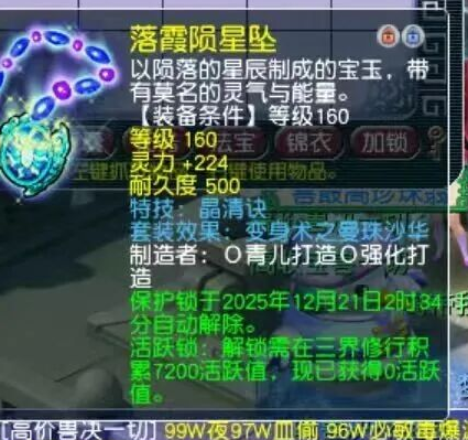大家好!「烤鸭看西游」每天为你带来不一样的故事。 1、新出160晶清项链 玩家鉴定出160级初灵224的晶清项链,PK必带大特技,号主也是发财了。 2、130无级别笑里男衣价值能到百牛? 玩家圆梦极品神器,130级无级别笑里铠甲!虽然防御215是国标,但携带极品耐敏双加属性,建议玩家多吃长寿面。 3、玩家鉴出150神佑笑里双剑 少侠展示自己此前鉴定的极品装备,为150级国标伤害单加46耐的神佑笑里双剑,有种很哇塞的感觉。 4、玩家圆梦三速度玉魄 玩家完成魂铸任务后,发表感慨,终于圆了十几年的梦想,终于可以实现提现。 叶子猪梦幻西游玩家群:1群 325703083 (2000人),2群: 330102322 (千人);3群: 424986787 (游戏疑难解答);4群: 330518295 (商人物价);5群: 1063086037 (疑难解答);6群: 1045753197 (春心萌动);7群: 787195090 (活跃互动);8群: 720665628 (全民PK) [编辑:百晓生]