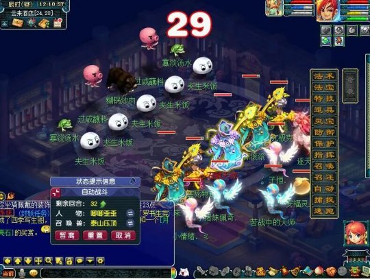 12月12日12:00,梦幻嘉年华第二阶段活动已在全服放出,因为怕玩家在一个月内刷腻,所以策划变更了下任务类型,战斗难度与奖励与原来保持一致。总结来看,多场战斗的怪物靠被击败后变身、逃跑、施法占用时长,送烹饪三药需要历经万水千山,打耐久的怪物可以忽略不计,具体请看小屏幕! 帮助善福小和尚制作假牙。 怪物没机会出手,但是倒地会变为混沌兽,相当于本场战斗看似只有5只怪,实际有10只。 助战灵身:会四海升平。 探寻遗珍。 主怪:会泰山压顶,被击败会变为元宝龟。 阴阳伞:被击败会变为染色形象。 净瓶女娲:被击败会变为进阶形象。 巨石守卫(昼):被击败会变为变异马面。 小怪被击败后改变形象,且无法被攻击。主怪被击败后变更形象,结束战斗。 帮霍师傅品尝并改良菜谱。 主怪:会地狱烈火。 巨蛙:会水攻。 章鱼:会烈火。 泡泡:没机会出手。 助战灵身:会聚精会神。 指导范书生进行诗歌写作。 主怪:龙宫,会龙卷雨击,被击败会变为进阶星灵仙子。 野猪精:神木,会尘土刃,被击败会变为雾中仙。 黑熊精:地府,会判官令,被击败会变为进阶蚌精。 灵鹤:被击败会变为琴仙。 小怪被击败后改变形象,且无法被攻击。主怪被击败后变更形象,结束战斗。 帮助雷黑子练习口技。 主怪:凌波,会浪涌。 灵鹤:会水攻。 踏云兽、雷鸟人、鼠先锋:没机会出手。 怪物被击败会变为野猪,且无法被攻击,全部击败并改变形象后结束战斗。 陪老太爷勘破棋局残局。 主怪:普攻。 小怪:尝试逃跑,但全部跑不掉。 调查扰民公鸡。 主怪:狮驼,变身后狮搏。 雷鸟人:盘丝,会魔音摄魂。 灵鹤:中速化生,会唧唧歪歪。 泡泡:普攻。 奇遇环,和第一阶段一样,感悟散落佛光,补充下怪物特性。 主怪:化生,会推气过宫。 芙蓉仙子:普攻。 蜃气妖:没机会出手。 植物果实:普攻。 送三药烹饪,不动用飞行祥瑞的话,实际距离还是挺费时间的。 叶子猪梦幻西游玩家群:1群 325703083 (2000人),2群: 330102322 (千人);3群: 424986787 (游戏疑难解答);4群: 330518295 (商人物价);5群: 1063086037 (疑难解答);6群: 1045753197 (春心萌动);7群: 787195090 (活跃互动);8群: 720665628 (全民PK) [编辑:百晓生]