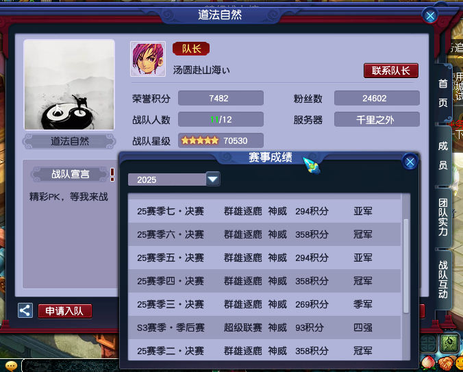 在本年度梦幻西游群雄逐鹿神威组的激烈角逐中,【道法自然】战队以独树一帜的战术体系与极具冲击力的赛场表现,成功斩获三个冠军,展现出在神威级别的非凡统治力。 今天,我们很高兴能邀请到战队中的核心成员——天歌。作为一名将热爱深植于梦幻、以极致追求诠释玩法的玩家,他在角色打造与战术理解上始终践行着属于自己的独特哲学。现在,就让我们一同聆听天歌的梦幻旅程,探寻成绩背后的坚持与思考。 一、加入道法自然的缘由 问:天歌老板您好,欢迎来到叶子猪!首先想请您和观众朋友们打个招呼,简单介绍一下自己。答:大家好,我是天歌,一位90后玩家。在我的网游生涯中,只玩过梦幻西游这一款游戏,其他任何游戏甚至连账号都没有注册过。 问:您当初是怎么开始接触《梦幻西游》的?又是基于什么样的契机,最终加入了【道法自然】这支战队?答:和大部分人一样,这是我从小接触的第一款网游。因为玩法独特,与我心中的剑侠梦十分契合,久而久之便产生了深厚的感情。长大之后,出于小时候的情怀,我再次回归游戏。加入【道法自然】战队,是因为两年前认识了一位梦幻好友——他是我第一个加微信的网游朋友,恰好也是【道法自然】的战队经理人。在机缘巧合之下,我就顺利加入了战队。 二、第一法系是如何炼成的? 问:可以和大家分享一下您在装备和召唤兽方面的搭配思路吗?这些资源主要是靠购买成品,还是自己鉴定、打书打造的呢?答:这个问题我很喜欢。我的搭配思路其实就一条:每一件装备和每一只宝宝,都要达到绝对领先的水平。我基本不怎么鉴定装备,但宝宝打书玩得特别多……哈哈。不过要吐槽一下,打书的成功率也太低了。 问:您在收购装备的过程中,有没有印象比较深刻的事?哪件装备是您最喜欢的呢?答:装备、灵饰、玉魄以及召唤兽,这一切的搭建都是冲着成为全服第一神威法系去的。当然,目前离完全成型还需要一些时间。 这条第一高灵项链就是我最喜欢的装备。 问:您说过自己特别喜欢打书。能聊聊您打书经历中,最成功的是哪只宠?最可惜的又是哪一只呢? 答:自己打造最成功的,肯定就是这只了——全服第一16技能净台画魂,后续还计划上超级否定兽诀。据我所知,就连175级也暂时没有净台五福宠。 而这只就非常可惜了,打超敏的时候掉了净台。12技能净台剑荡,也是全服唯一的画魂胚子。 三、团队的夺冠趣事 问:在夺冠的道路上,有没有哪个团队是让您印象特别深刻的?答:其实神威组的竞争压力不亚于武神坛,具备夺冠实力的队伍就有好几支。印象最深的当然要数老对手【夕阳红】,他们是一支实力强劲且成绩很稳定的队伍。 问:团队在决定上场阵容时,通常会考量哪些因素?有没有哪一套阵容是你们特别擅长、用得最顺手的?答:这方面的事情主要由指挥去思考。我对游戏PK竞技内容的了解还不深,也许以后会自己学一些相关的东西。哈哈,希望有朝一日能成为一名合格的操作手。 问:九黎城在经历调整之后,对你们的战术体系影响大吗?有没有考虑寻找其他门派作为替代?答:其实对我们的打法体系影响不大,因为我们队伍的九黎实力很强,和萌大奶的物理号属于同一梯队。这里可以透露一下,我们队伍后续也会有凌波城门派加入。 问:最近网上在传新门派“弥勒山”,您有关注到吗?如果这个门派真的推出,您觉得它可能会具备哪些机制或特色?答:当然有关注,很期待。九黎城是双武器,我就在想,弥勒山会不会是带两条腰带呢?哈哈。 四、未来规划 问:关于未来的提升方向,团队有没有明确的计划?比如在装备、灵饰、玉魄、召唤兽等方面,接下来会重点更新哪些内容?另外,对于明年团队的成绩,有没有一个大致的目标?答:团队计划当然是希望招揽更多老板,增强整体实力。至于我自己的更新重点,那就是全部都要继续增强。因为我这个人特别追求完美,既然认真玩了,就一定要把装备、灵饰、玉、宝宝等每一个方面都更新到我认为最完美的程度,否则绝不罢休。 问:最后,有没有一些建议可以给到同样喜欢神威百套PK的玩家朋友们?答:我没有什么特别的建议,但我真的很喜欢梦幻西游神威109这个等级。以后我也只会玩这个等级,并希望在这里认识更多的朋友,大家一起玩得开心。 五、小结 感谢天歌老板在百忙之中接受本次采访。他不仅分享了自己从玩梦幻到加入战队的缘分,也坦诚讲述了对装备、宝宝打造的“完美主义”追求,更表达了对战队未来发展的期待。 从他专注神威、钟情梦幻的态度中,我们感受到了一名资深玩家纯粹的热爱与坚持。在此祝愿天歌与【道法自然】战队在今后的比赛中越战越勇,早日达成“全服第一神威法系”的目标! 叶子猪梦幻西游玩家群:1群 325703083 (2000人),2群: 330102322 (千人);3群: 424986787 (游戏疑难解答);4群: 330518295 (商人物价);5群: 1063086037 (疑难解答);6群: 1045753197 (春心萌动);7群: 787195090 (活跃互动);8群: 720665628 (全民PK) [编辑:百晓生]