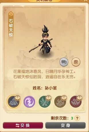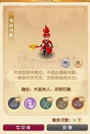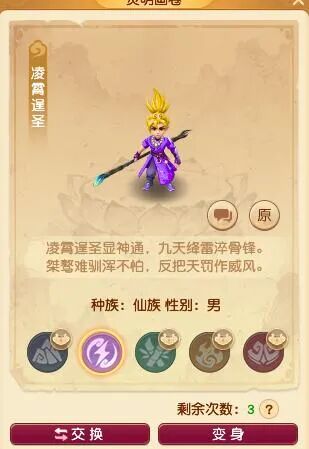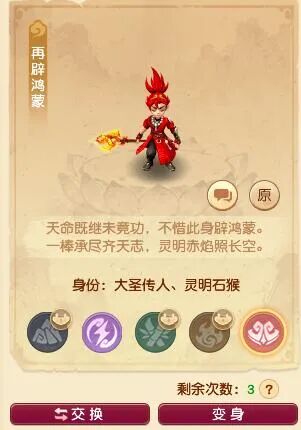 12月18日12:00,玩家接取到嘉年华奇遇环时,可发现对话NPC的头像发生了变化。 小副本里的神秘少年来到了环式玩法中。 作为玩家助战,他出手就来了一发神针撼海,每棍接近1W5,由此可见其所属种族为仙族,可加入花果山。 因为官方维护公告里有过预告,“随着嘉年华庆典的烟花在长安城上空绚烂绽放,一道灵明之光,悄然坠入三界。。。2025年12月18日12:00至2026年1月27日8:00期间,玩家(角色等级≥50级)登录游戏后点击主界面左上角“新内容”图标,即可一探究竟。于是,我们便来探个究竟! 一打开界面,玩家可看到一个CG宣传动画,此少年与某个大能握手后,便挥棒击向了虚空中的浊念化身。 动画播完后,可得知这是新资料片的宣传片,并获悉全服放出时间为1月27日。同时,玩家可通过领取灵明画卷,化身为孙小圣。 打开画卷后可看到此新形象的不同染色效果,并获悉此形象的相关信息,初始告诉我们,他叫孙小圣。 第二个染色透露信息,所属种族为仙族。 第三个染色透露信息,可佩戴武器为棍、法杖,到这里可以确定其为新角色。 下一项染色透露其所属地为未来的花果山。 最后一项染色透露其身份为大圣传人、灵明石猴,那么,自然可以加入花果山的,不过按照梦幻的惯例,新出角色必然伴随着新门派,花果山已经有桃夭夭撑场了,他会师从何方呢? 不过话说回来,他是孙小圣,那花果山这只又是谁呢?到这里仔细一看,原来早有预谋,可怜的猴子被新角色除名了。 当然,玩家若要解锁体验其余染色效果,需要通过与同样拥有画卷的玩家交换才可。 解锁成功后,可看到锁头已经去掉了。 点击变身即可看到该传人形象。 这是战斗背面形象。 这是使用法杖的攻击效果。 若解锁这个形象,可获得一个神通变身的附加效果,就像孙悟空那样靠在棒子上面眺望。 手持棒子的站姿如图所示,这有点像超级赛亚人呢! 攻击效果,当真是一棍子砸下去。 若点击新内容页面的放大镜,则可获得新资料片更多关联信息。 右侧这里提示,还有新召唤兽、新门派。 而官网早拟好资讯了,其中新武器“棍”或许可以刺激玩家新一轮的跑环热情;新召唤兽九色鹿、翼马类似天狗,有两种形态,这意味着炼妖市场也有被激活的可能;最后,新天命门派“弥勒山”为仙族门派,那对应来说,未来还会有两个新角色及人魔两个种族门派,你期待吗? 叶子猪梦幻西游玩家群:1群 325703083 (2000人),2群: 330102322 (千人);3群: 424986787 (游戏疑难解答);4群: 330518295 (商人物价);5群: 1063086037 (疑难解答);6群: 1045753197 (春心萌动);7群: 787195090 (活跃互动);8群: 720665628 (全民PK) [编辑:百晓生]