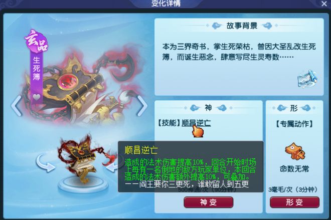 某年某月某天的中午,小美在食堂吃饭时听隔壁桌的同学说:“现在梦幻的神变系统是真方便了,比如!@¥@!%&”! 听到这里,小美顿觉“无地自容”!神变系统上线这么久了,咱竟然没有为大家介绍过神变系统的诸多“方便之处”!该罚,实在该罚! 话不多说,今天就让咱们一起了解那些“方便好用”的神变效果! 【日常三剑客】 要说神变效果中登场率最高的,那必须是“判官笔”、“金箍棒”和“钟书生”。 其中,“判官笔”的效果为魔之心,适合所有法系门派的玩家。“金箍棒”的效果为夜战,适合所有物理门派的玩家。“钟书生”的效果是慧根,适合所有固伤门派的玩家。 【最强“工具变身”】 神变系统上线前,相信很多玩家和小美一样,面对着“挂机的懒队友和复杂的单人任务”,只能含泪放弃如黑风山、七绝山这类包含单人任务的副本。 神变系统上线后,咱们可以利用“哒哒”的效果自动完成部分副本的单人玩法。这其中就包括了曾让咱们“又爱又恨”的黑风山和七绝山副本! 友情提示:“哒哒”的每次变身效果都会持续60分钟,咱们可以先刷黑风山再刷七绝山,一次“哒哒”覆盖两个副本,让“哒哒”发挥最大价值哦! 【降低任务难度】 如果说“日常三剑客”属于“刚需”神变,“哒哒”是咱们日常副本的好帮手。那下面这几种神变效果则是在特定场合能够发挥出“意想不到”的效果。 【瑶池仙女】 很多玩家对七绝山副本“敬而远之”,一方面是因为单人任务有些“麻烦”。另一方面则是因为七绝山副本的BOSS红鳞蛇妖堪称“低法防门派的杀手”,动辄开场三发雷击秒杀咱们固伤门派玩家更是家常便饭。 这时候,咱们不妨试试“瑶池仙女”神变,利用雷属性吸收的效果,大幅度降低红鳞蛇妖对低法防门派的威胁,让咱们轻轻松松打败红鳞蛇妖。 当然,“瑶池仙女”拥有四种不同形态,可以分别吸收土、雷、火、水四系法术。因此,“瑶池仙女”的作用可不只是“针对”红鳞蛇妖哦。 【吴刚】 如果让咱们评选“如梦奇谭最难的战斗”,相信五更寒的魔化村长绝对会榜上有名。本场战斗中,前排的女儿怪物们会使用伤害极高的雨落寒沙,并让咱们陷入“讨厌”的中毒状态。 这时候,咱们只需要使用“吴刚”神变,就可以获得移花接木的效果,让前排的女儿怪物们不但打不出高额暗器伤害,还能化身“最佳辅助”帮咱们加血哦。 【巫灵儿】 随着各位玩家对梦幻的开发,天气系统在战斗中的作用也是越来越重要。以此为背景,小美特别推荐各位辅助门派的玩家多多尝试“巫灵儿”神变效果。 “巫灵儿”神变效果不但能够提供法术抵抗效果,为咱们增加105点法防(175级),还让咱们受到技能万物有时的加持: 风天时,变身“巫灵儿”玩家的宝宝将获得风息花效果,提升宝宝约25%的伤害(宝宝触发瞬法或瞬击特性时无法受到风息花加成)。 雨天时,变身“巫灵儿”玩家获得雨露花效果,在咱们受到攻击并且气血降低到10%以下时可触发一次回血效果,堪称“保命神技”(不同于163和神佑,无法做到免死)。 雪天时,变身“巫灵儿”的玩家获得雪莹花效果,速度提升约10%-15%,具体增幅受到面板速度影响。 【生死簿】 根据小美调研,70%的法系门派玩家都表示:“神变系统提供的‘生死簿’神变堪称法系门派的‘神级变身’”。 “生死簿”的核心技能顺昌逆亡自带魔之心效果,同时还具备可怕的“叠伤机制”。 凭借着“生死簿”神变效果,法系门派可以切换耐属性并配合“生死簿”,轻松做到“又肉又有输出”,实用性拉满! 好啦,今天的神变效果推荐就到这里! 各位玩家还知道什么好用的神变效果么?不妨来评论区分享吧! 叶子猪梦幻西游玩家群:1群 325703083 (2000人),2群: 330102322 (千人);3群: 424986787 (游戏疑难解答);4群: 330518295 (商人物价);5群: 1063086037 (疑难解答);6群: 1045753197 (春心萌动);7群: 787195090 (活跃互动);8群: 720665628 (全民PK) [编辑:百晓生]