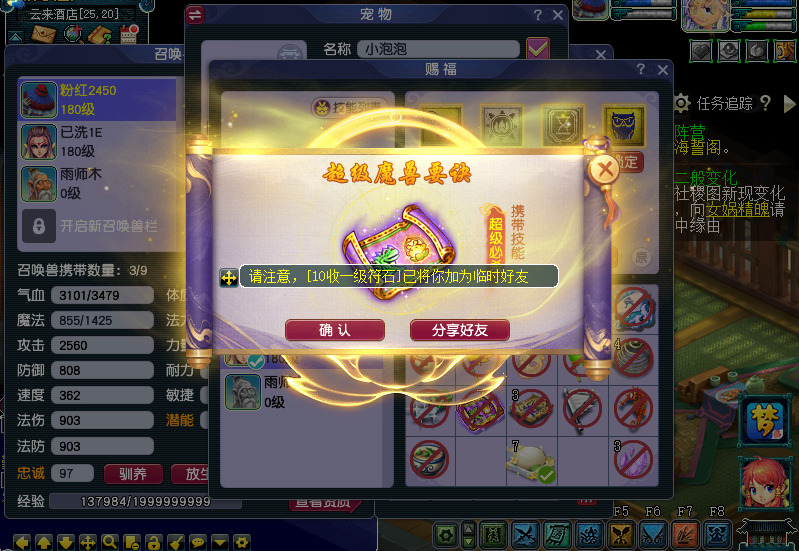 昨天堪称梦幻西游的“欧皇之日”:一边是时间服玩家喜提极品三法伤玉魄,另一边畅玩服中旭旭宝宝更拿下齐天第一宠装。下面,一起来看本期精彩内容! 一、236法伤玉魄傲视三界 昨夜,一位少侠在魂铸任务中斩获一枚前排玉魄,其罕见之处在于三条属性均为法伤。玉魄本身已自带2级灵尘,法伤加成高达56点。若将其镶嵌至15锻极限,总法伤属性将飙升至236点——该数值已逼近属性上限,足以排入全服法系玉魄榜前三的位置。 如此极品的玉魄,注定引来神豪争相竞逐。这位少侠可谓提前收获丰厚的年终大礼。 二、旭旭宝宝79伤项圈被开价100亿梦幻币 近期,旭旭宝宝可谓运势爆棚,无论是在装备鉴定还是宠装打造上都惊喜连连。先是在【龙拳】服务器鉴定出一把初总伤高达716、单加27耐力的130级简易刀,打完满锻红玛瑙后综合伤害可达845,足以竞争畅玩服第一天科武器的宝座。 后来,他回到【齐天大圣】服务器,在打造115级召唤兽装备时,又意外收获一件基础速度40、综合伤害79的项圈。这件无可争议的“齐天第一物理宠装”,甚至引来神豪当场开出100亿梦幻币的高价! 运气与实力并存,旭旭宝宝这一波操作,属实是赢麻了。 三、仓库的精铁助我圆梦无级别 不久前,有位老哥趁着年底清理仓库,本想卖掉杂物换点梦幻币好好跨年。结果发现一块140级铁才值200万,觉得卖了可惜,索性低价买来一把女武器,随手一打——竟真的出了梦寐以求的无级别蓝字。 这环圈初总伤高达692,还带38点体质加成,十分适合X9等级的凌波、大唐等女物理门派使用。老哥感叹:逆袭的机会来得就是这么奇妙,该是你的,终究会来。 四、一年的快乐都是赐福给的 前段时间,【诗情画意】服务器有位少侠为了提升召唤兽的任务效率,对一只吸血鬼进行赐福——没想到竟人品爆发,被系统直接赐予了一本超级必杀兽诀! 该兽诀不仅可将必杀概率提升至25%,触发时更有几率打出3~4倍的暴击效果,能极大强化服战攻谛听的输出,甚至有一招团灭对手的潜力。 目前,号主已将其高价上架藏宝阁,欢迎有意向的老板前来议价。 今天的新鲜事就到这里了,各位小伙伴如果在游戏内、外碰见什么有意思的事情,都可以给我们投稿哦! 叶子猪梦幻西游玩家群:1群 325703083 (2000人),2群: 330102322 (千人);3群: 424986787 (游戏疑难解答);4群: 330518295 (商人物价);5群: 1063086037 (疑难解答);6群: 1045753197 (春心萌动);7群: 787195090 (活跃互动);8群: 720665628 (全民PK) [编辑:百晓生]