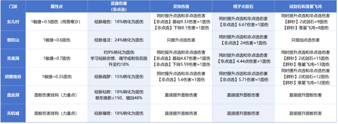 快乐游戏,幸福生活!大家好,这里是《玄霆说梦幻西游》~致力于创作有趣的游戏资讯! 五开玩家群体很多,但职业五开群体只是一小部分。大多数五开都是为了游戏方便、自由自主搭配的,很多的细节可能由于不知道、懒得弄等原因都有待提升。今天,玄霆就从自身经验出发,用举例子的方式给大家介绍一些提升五开输出能力的小方法,希望对大家有用。 提示:这些细节在专业五开面前属于老生常谈了,对此请各位高手不要嘲笑;只希望能对众多非专业五开的玩家有所提升。个人观点,仅供参考。 一、伤害提升方面 很多玩家认为伤害只与物理系有关,这种观点过于片面。例如武器的伤害就与所有门派相关。武器伤害可以折算成辅助的治疗能力、固伤的输出能力、法系的灵力提升、封系的封印命中率。就拿大家最熟悉的法系来讲,武器的一点伤害相当于0.25的法伤,这是直接体现在面板上的。如果打一张伤害符能提升100点伤害,折合成面板法伤就是25点。 同样的装备、武器上的宝石也是如此。武器打太阳石不必多说,为何很多极限固伤的头盔也打太阳石呀?他们不知道月亮石能提升抗性呀?那就是因为头盔上的太阳石也能折算成固伤输出的,只不过不同的固伤门派折算系数不同而已。还有一个细节就是落星飞鸿与试剑石,对于很多固伤门派来讲,带上不会消耗灵气,但是可以有效的提升固伤输出,大家一定要试一下,谁用谁知道! 因此,五开玩家,无论是平民、难民都是如此,如果遇到便宜的伤害符可以直接买了打一下,对于输出还是很有帮助的呢~ 二、符石与符石组合 几乎所有五开都知道开符石组合,例如固伤普陀的行云流水、魔化生的唧唧歪歪等,可以大幅度提升输出能力,但是玄霆说的却是符石组合中的“符石属性”,这才是大家很容易忽视的点。为了说清楚,我们依旧是距离来讲。 这是我的两件装备,前者所有的符石我都尽可能选择有用的属性“气血+速度”,这一排下来价格贵了270万,但是多60气血、6点速度;我们再看右边的鞋子符石就很杂乱,例如魔力、固伤等都是无用的属性,而且还有符石是用一级的凑合,浪费了符石所能带来的提升。这也就导致了,同为紫色符石,敏捷、魔法的才80万,但是敏捷法伤的却要188万一样。因此有条件的玩家可以注意一下,特别是法系和固伤,符石自带的属性也是很关键的,毕竟一级舍利子才6点灵力,一个符石就多2点法伤。而且说真的,符石只要不是在武器上,损耗真的不大,成本也就不高,但带来的提升还是很不错的。 后续还有经脉流派的选择、灵饰细节以及武器装备的双加择取等方面可以讨论,只不过因为时间问题(中午我要下班了0.0~),我们下期再聊啊。 对了,大家还有什么提升小技巧呢?欢迎在评论区讨论哦。我是玄霆,感兴趣的话点个关注吧~ 叶子猪梦幻西游玩家群:1群 325703083 (2000人),2群: 330102322 (千人);3群: 424986787 (游戏疑难解答);4群: 330518295 (商人物价);5群: 1063086037 (疑难解答);6群: 1045753197 (春心萌动);7群: 787195090 (活跃互动);8群: 720665628 (全民PK) [编辑:百晓生]