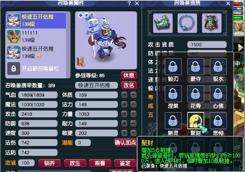 过来了宝儿!“豆豆说五开”为你推送游戏日常。 淘汰唯一没有锁的泪妖终于卖掉了,看着是不是挺贵,但这仅够赐福的成本。 这不是又有钱儿大更新了!第三只日游可以快速进阶带出来了。 别的先不管,青花瓷安排上!之前仙玉是留作买新锦衣的,结果放出的是猫猫狗狗有点一般。 102灵性足矣,别说进阶110,连内丹你豆都不舍得吃舍生击内丹。 2400伤害凑合用,速度过两天能吃元宵补上去。 特性没什么太好的,都要花时间搞,所以拿聚财先凑个数。 宠装也秒起来,230R先来一件二号位,本来有件一模一样的两百,奈何秒错链接。 三号位100R还可以,综合敏伤63。 善恶点化也先安排上,剩下两只宝宝还差6个点化石,最近搞了十车吸附,试试能出几个。 本想分解后换吸附,没想到还有小惊喜。 最近对炼妖失去了兴趣,但又迷上了这玩意,十车两百枚开搞!第二十个就出了一件善恶点化!十车那不得出十枚? 乐极生悲,第160个吸附才出第二块点化,而且还是个垃圾再生! 后面一直到两百个吸附也没再出货,相当于两千万买一个善恶点化石。 没辙了还是靠宠装回口血吧,最近在这方面运气也不错。58伤害满命中怎么样,长安街能卖个1000+W! 赚到后必须再花出去,97.28R买到第一只血攻! 这种宝宝主要是为了三星神器,兄弟们总嫌豆豆刷神器宝宝容易飞,能有个四千血扛得住就行! 好久没给宝儿们看过杀怪效果了,上周铃铛效率又有提升,币子投进去后表面上看提升不大,但刷起来舒适度和效率确实越来越快。 刷了163环也还行吧,不算快也不算慢,基本就这样了,下期继续搞第四只赐福! 叶子猪梦幻西游玩家群:1群 325703083 (2000人),2群: 330102322 (千人);3群: 424986787 (游戏疑难解答);4群: 330518295 (商人物价);5群: 1063086037 (疑难解答);6群: 1045753197 (春心萌动);7群: 787195090 (活跃互动);8群: 720665628 (全民PK) [编辑:百晓生]