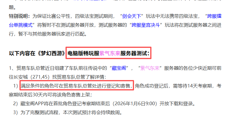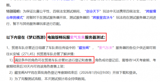 梦幻西游畅玩服开放藏宝阁,只能交易角色且手续费8%