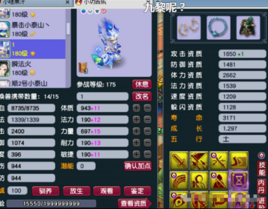 大家好!「烤鸭看西游」每天为你带来不一样的故事。 1、天科第一简易晶清头盔出厂 一位玩家成功鉴定出一件130级简易晶清诀男头,属性颇为难得,属于天科毕业级神装。 2、赛赛亲自签名两件160特技装备 赛赛为紫禁城普陀山鉴定装备,运气相当不错——不仅出了160级“妙法之护”鞋子,更鉴定出一件160级玄鸟之灵女衣,防御高达271点且力敏双加。 值得一提的是,这两件装备都是她自己亲手签名的! 3、老王给假四季童子估价25W 老王展示了一只14技能的“假四季”召唤兽(已打两本超级兽决),并给出了25万的估价。 4、雪碧9.8W买法谛听 雪碧喜提一只8技能法谛听,不过当前谛听的市场价值确实已大不如前。 叶子猪梦幻西游玩家群:1群 325703083 (2000人),2群: 330102322 (千人);3群: 424986787 (游戏疑难解答);4群: 330518295 (商人物价);5群: 1063086037 (疑难解答);6群: 1045753197 (春心萌动);7群: 787195090 (活跃互动);8群: 720665628 (全民PK) [编辑:百晓生]