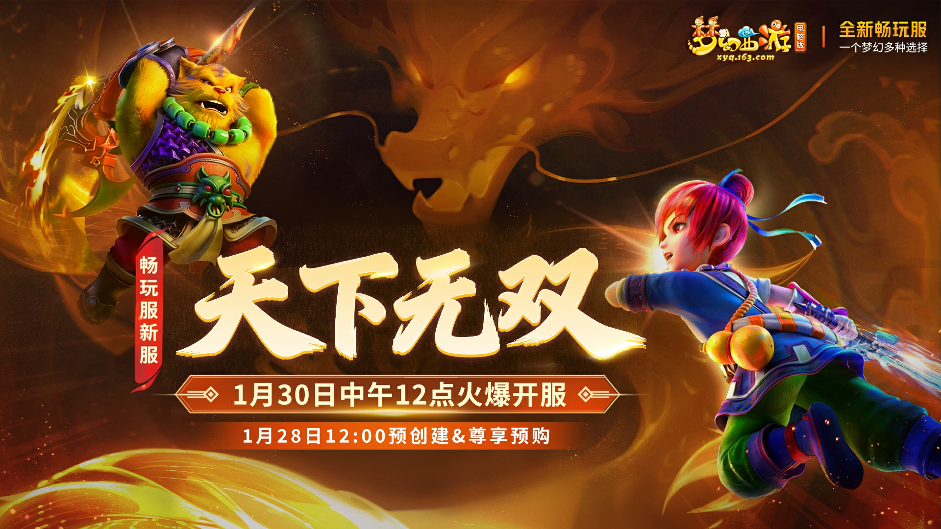 对无数少侠而言,“天下无双”承载的是一段热血青春与对巅峰的向往。【天下无双】不仅是一个万众瞩目的热门大区,更寄托了无数玩家对百亿经验成就的深切追求。三界之中,从不缺少超越与突破的传奇——从擂台初试锋芒,到比武场上叱咤风云,“无双”二字,诠释着一代代梦幻玩家对极致的执着。 这份对巅峰的渴望与信念,即将续写新篇。畅玩服全新服务器【天下无双】将于2026年1月30日12:00正式开启,恭候三界英豪登临! 达巅峰成就,赢取限量“无双”专属荣誉与重磅好礼 天下无双新服设立多项高光成就挑战,涵盖PVE挑战、PVP竞技、召唤兽合成、社交建设、装备打造等多个维度,前5位达成以下任一成就的玩家,即可获得永久限定“无双”系列荣誉称谓及游戏周边礼包(内含角色Q版手办*1+高级魔兽要诀抱枕*1+泡泡拍拍灯*1) 每一项成就,皆是对实力、毅力与人气的证明;每一次突破,都将载入“天下无双”的服务器史册,限量荣誉,专属称号,豪华周边——只属于最快达成目标的你! 奖励领取时间:2026年3月10日维护后,达成成就挑战的少侠,可到长安城(113,186)的“推广活动使者”处领取称谓奖励,且获奖名单将公示官网 以锦鲤之运!预约新服抽足金好礼 新年玩新服,福利再加码!即日起,扫码预约【天下无双】新服,即可参与预约抽奖活动。新年奖池全面升级,不仅有机会将精美游戏角色手办、萌趣泡泡拍拍灯带回家,更有千足金条、黄金坠链、黄金串饰等重磅好礼,为你送上2026年第一份“硬核”开运祝福! 【十二生肖千足金条】以千足金铸造,以骏马奔腾与马到成功铜钱为核心纹样,寓意新年一马当先、财源广进、事业腾达。既是值得收藏的传家金品,更是伴你开启青云之路的开运信物。【梦幻西游定制足金串饰】与【金箍棒黄金坠链】精致小巧,吉祥随身,可将西游气运佩于掌中、系于颈间。