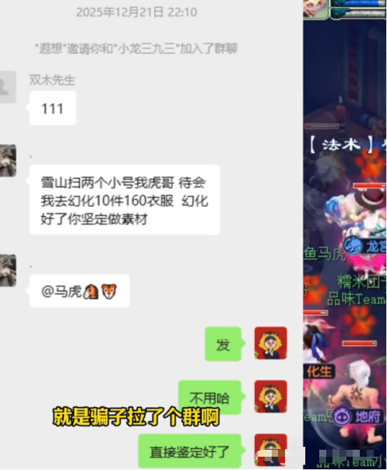 大家好!「烤鸭看西游」每天为你带来不一样的故事。 1、风少展示20技能四季雷鸟人 风少这次为大家展示时间服第二只六神宝宝——一只20技能的雷鸟人。目前这只雷鸟人已打上2本超级兽决,拥有神马与力劈技能,但超级否定尚未上去,目前仍处于假四季状态。 2、马虎分享被骗过程 很多兄弟想知道马虎是怎么被骗的。马虎随后公开了骗子的作案手法及聊天记录:骗子先是建群,拉进马虎的其中一名好友——这次被冒充的是“小龙393”。 马虎没多想,便扫码把号给了对方,确实也没仔细确认身份。骗子之所以知道他与小龙393认识,是因为马虎之前发布过小龙393的相关视频,还曾为他引流过。 3、玩家鉴出140级三法伤戒指 有玩家鉴定出一枚140级三法伤戒指,主属性为29防御,法系老板们看到都流口水。 4、珍宝阁服战普陀买三法防手镯 珍宝阁服战普陀老板更新特给力,高价买下三法防手镯。天佑东方,又加强了。 叶子猪梦幻西游玩家群:1群 325703083 (2000人),2群: 330102322 (千人);3群: 424986787 (游戏疑难解答);4群: 330518295 (商人物价);5群: 1063086037 (疑难解答);6群: 1045753197 (春心萌动);7群: 787195090 (活跃互动);8群: 720665628 (全民PK) [编辑:百晓生]