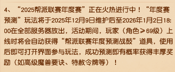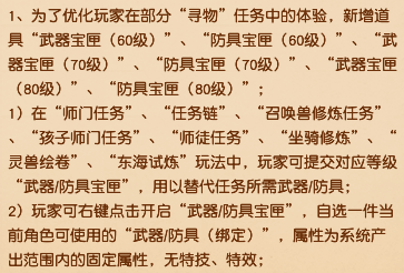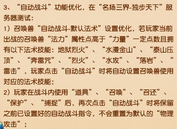 此物梦幻经,游戏随心听。 上古玉魄终于可以上架藏宝阁,混乱的市场价格终将迎来秩序和透明,目前还没有装备玉魄的玩家,可以等大批量玉魄上架后再观望。 目前哪怕上架,价格也是偏高的,预计再过三个月或半年,价格就会趋于稳定。如果不是急着PK或者急着提升,耐心等待可能是更好的选择。 后续跑出来的玉魄属性好的也会被加保护锁。 新增武器宝匣与防具宝匣,在师门任务、跑环任务时可以替代需要武器装备进行提交。宝匣可以叠加30个,但使用后会绑定为个人使用,且为白板固定属性装备。直白点就是任务专用,以及新区过渡用。 帮派联赛年度赛预测玩法个人感觉可以玩,新玩法奖励都不错,后续可能被优化。 划重点,冬至日当天,也就是12月21日的18:00-21:00将进行每5分钟一次的全服神兽抽奖,记得获得10点太清积分,并且享用梦幻冬至团员宴,下一个幸运儿会是谁? 说了好久的自动战斗优化终于再测试了,以后法宠法力点数高于力量点数一定数量,且拥有四系法术技能的,点击自动战斗后将会自动设置成法术。 还有就是众多固伤玩家们关心的自动使用暗器设置也会测试优化,但能不能出测试区又是未知数了。 这个设置真的有点搞笑的,和木桩战斗的时候有时候都无法逃跑,这原先设置就有问题,也不干脆直接设置一个结束战斗。 可以给乾元丹方案自定义名称,正向优化,满足玩家多样化需求。 叶子猪梦幻西游玩家群:1群 325703083 (2000人),2群: 330102322 (千人);3群: 424986787 (游戏疑难解答);4群: 330518295 (商人物价);5群: 1063086037 (疑难解答);6群: 1045753197 (春心萌动);7群: 787195090 (活跃互动);8群: 720665628 (全民PK) [编辑:百晓生]