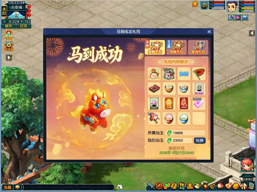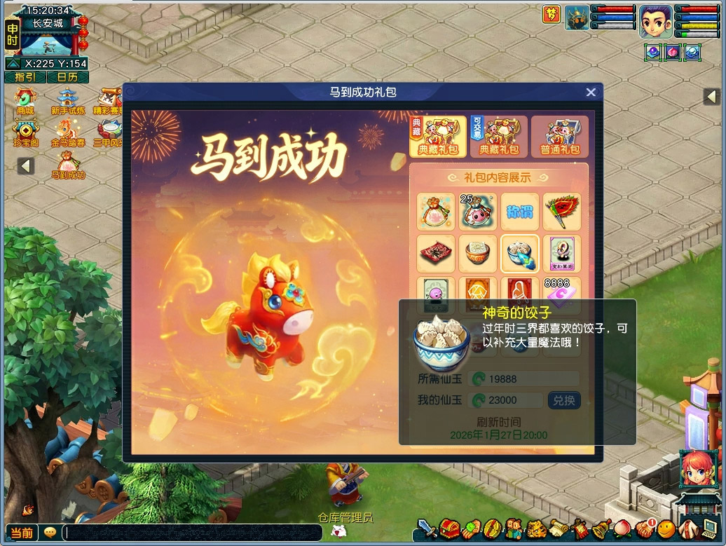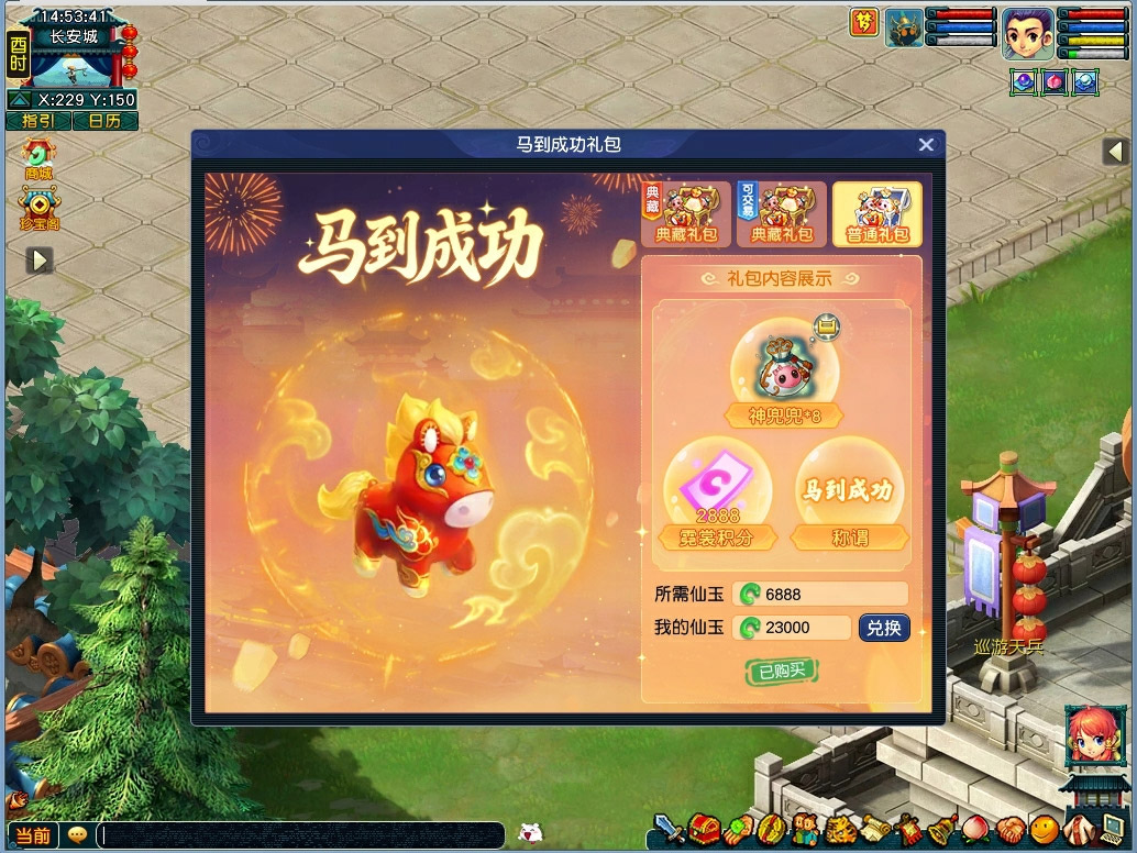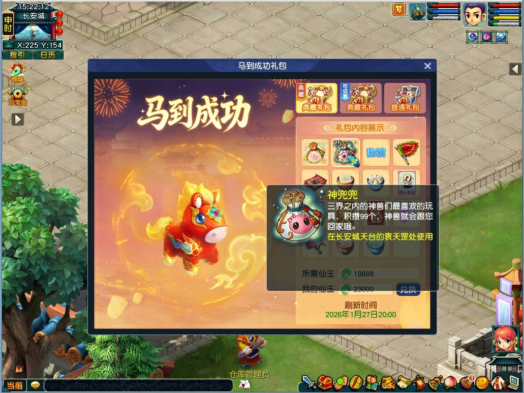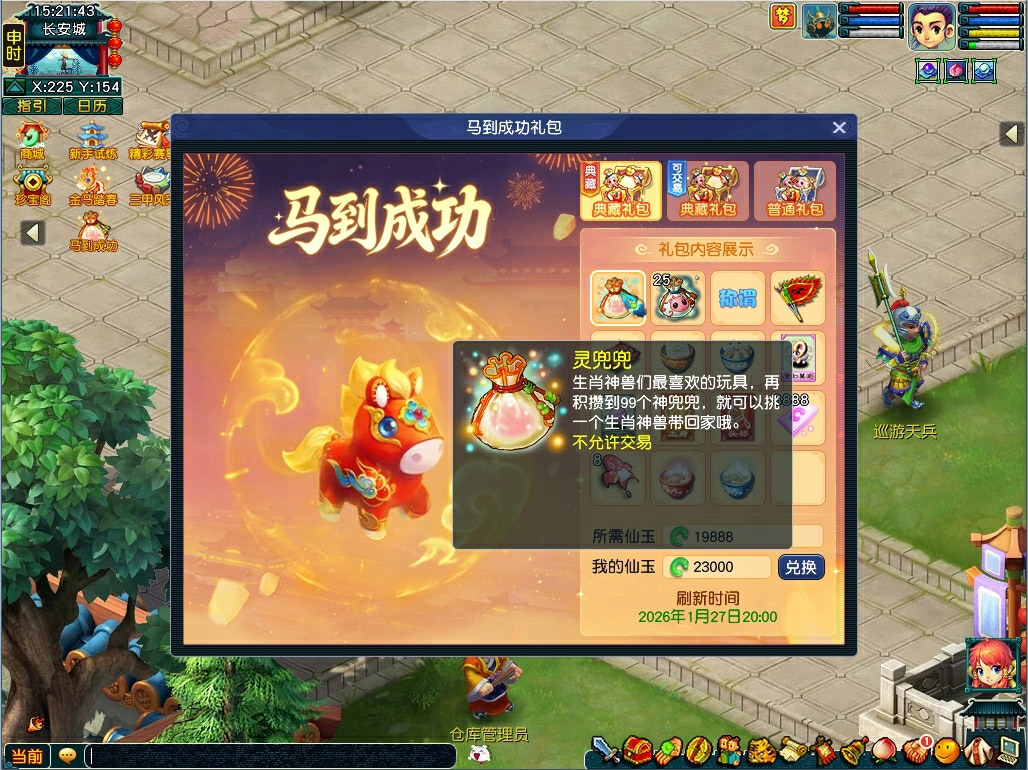 梦幻西游新年马到成功礼包,可用灵兜兜+99神兜兜换指定超级神马