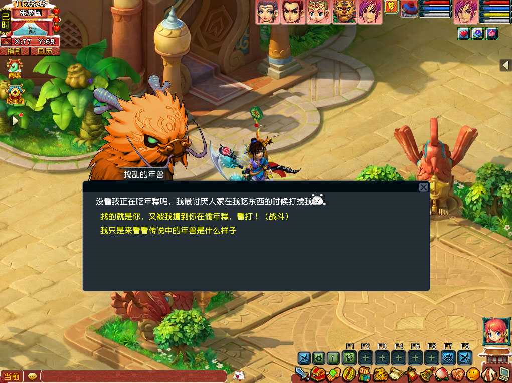 骅骝献瑞增福禄,神马欢腾闹新春。《梦幻西游》电脑版畅玩服2026年春节活动将于2026年2月3日12:00至3月3日12:00全服放出。 一、烟花驱年兽(投放怪) 活动时间 测试时间:2026年1月27日12:00至2026年1月28日12:00 全服时间:2026年2月3日12:00至2026年3月3日12:00 活动条件 等级≥40级,队伍人数≥3人 活动介绍 相传,中国古时候有一种叫“年”的怪兽,头长触角,凶猛异常。“年兽”长年深居海底,每到除夕才爬上岸,吞食牲畜伤害人命。因此,每到除夕这天,村村寨寨的人们扶老携幼逃往深山,以躲避年兽的伤害。 有一年,一个神秘的老人出现,用带有火光和声响的烟花驱走了年兽。欣喜若狂的乡亲们为庆贺吉祥的来临,纷纷换新衣戴新帽,到亲友家道喜问好。这件事很快在周围村里传开了,人们都知道了驱赶年兽的办法。 从此每年除夕,家家贴红对联、燃放爆竹烟花;户户烛火通明、守更待岁。初一一大早,还要走亲串友道喜问好。这风俗越传越广,成了中国民间最隆重的传统节日。 活动期间内,每隔15分钟,天神将在游戏中随机场景内散落“七彩烟花”,这是用来驱赶年兽的法宝。每个整点的10分、40分,在民间四处作乱的年兽会出现在随机场景,玩家可以带上烟花前去驱赶捣乱的年兽。 捣乱的年兽属于上古野兽,十分耐打,普通兵器法术难以对它造成有效伤害(不会死亡),所以巧妙地使用物品是十分重要的。相信聪明的少侠也很快会发现年兽的最大弱点——害怕七彩烟花。 服务器内玩家成功赶走年兽达到一定数量后,藏在暗处的大年兽将会现身,战胜它会获得更加丰厚的奖励哦! 特别说明 1、奖励不受双倍时间影响。 2、战斗死亡为非正常死亡,原地复活无损失。 3、每日最多战胜5次捣乱的年兽,1次大年兽,拾取5次七彩烟花。 4、错过天神投下的七彩烟花也没关系,可在长安罗道人处直接购买哦。 5、当有玩家选择挑战大年兽时,进行持续5秒的倒计时。倒计时结束后,从这段时间内所有向大年兽发起挑战的队伍中随机选择一队,进入战斗。
