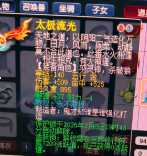 大家好!「烤鸭看西游」每天为你带来不一样的故事。 一、玩家鉴定140不磨固伤神弓 玩家用三把140级军火武器鉴定,成功出了一把伤害509、命中525、单加敏捷37的永不磨损弓箭,高端地府、无底洞刷任务用很舒服。 二、玩家鉴定出60神佑慈航法杖 玩家鉴定出一把60级武器,伤害190、命中220,附带神佑和慈航普度双特效,看来只能由69级的女儿村使用了。 三、涛哥表示月薪3K也能打服战 涛哥在直播中回答粉丝提问:“月薪3000能打服战吗?” 他表示:“可以的,只要有心怎么都能打。找个没人的区,别说3000了,1000都能打,但什么成绩可不敢保证。” 四、玩家鉴出130无级别女衣 玩家鉴定出一件130级无级别女衣,防御高达215点,单加属性28点。 叶子猪梦幻西游玩家群:1群 325703083 (2000人),2群: 330102322 (千人);3群: 424986787 (游戏疑难解答);4群: 330518295 (商人物价);5群: 1063086037 (疑难解答);6群: 1045753197 (春心萌动);7群: 787195090 (活跃互动);8群: 720665628 (全民PK) [编辑:百晓生]