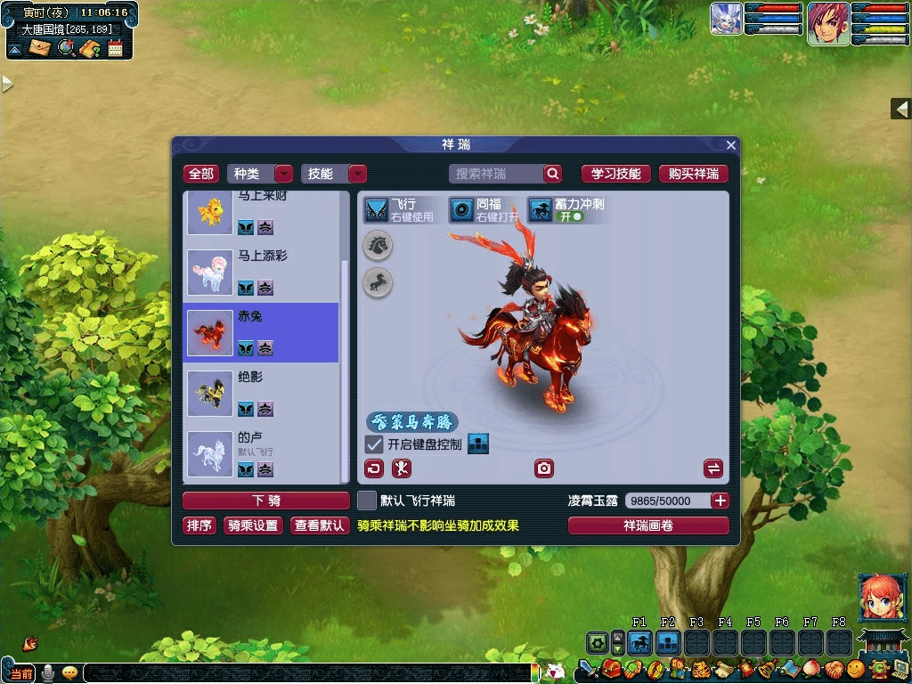 【键盘操控:首个WASD键盘操控的祥瑞】 开启“键盘控制功能”后,长按键盘W/A/S/D按键可控制角色移动, 冲刺过程中也可用键盘控制转向 单击键盘空格键可控制马匹跳跃。 除了冲刺技能以外 新春祥瑞还有诸多特色玩法