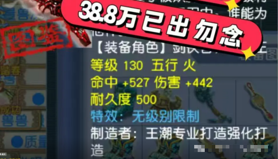 梦幻西游旭旭宝宝无级别刀38.8W成交,风少58W买顶尖玉魄
