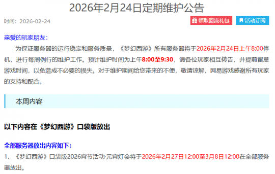 梦幻西游2月24日维护解读:元宵节活动开启,百服平转冲刺