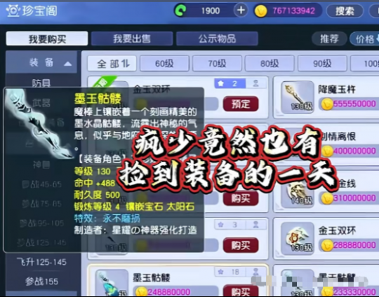 捡漏是一件特别难的事情,因为说明这件东西的价格摆低了。还正好的被你看到了,并且发现了它的价值买下它。接着自己继续上架,然后卖掉大赚一笔。很多价格比较低的,那都是很多人抢着买的,好比那6000块的青花瓷角色。 而最近,风少也体验了一下什么是捡漏的感觉。他最近在齐天大圣更新装备,为接下来的比武做准备,结果也买到了一把价格特别低的武器。和神奇一起来看看吧。 TOP1:新出极品女儿村双剑 这把畅玩服新出的140级祖龙对剑武器初始伤害才451点,属于国标属性。但是附带双加属性很优秀,特别是耐力属性点。 这把武器之所以值得一看,主要是蓝字格外不一样。特技带了光辉之甲,是可以给自己或者队友加防御,主要是能够持续到战斗结束。而且还能带一个神佑,有时候能躲避对面给自己的击杀,非常之有用的。 TOP2:龟速蛟龙法宠 现在几乎所有的宝宝,都能打造成高速和龟速的。不管是血宠还是法宠,因为速度不同,自然用途也不一样。高速就为了抢一速,龟速就是为了压对面的拉起。 这只蛟龙8个红色的技能,技能还比较齐全,走的是一个血法宠。我们看到4个高级法术技能,还带了迟钝和高级反震,加上高级招架。另外这个高神也是格外重要的。因为是血法宝宝,所以认证的是一个小法,我们看到是烈火。宝宝在没穿宠物装备的情况下,现在是2283点气血和483点是法术伤害。 TOP3:风少畅玩服成功捡漏 珍宝阁是玩家们交易宝宝和物品的地方,但是只能是本区的物品。风少也是在给自己的普陀山全面更新140级的装备。结果看到公示期有一把金玉双环,才摆了9个多亿,他觉得特别好。 武器是一个54点的魔力和耐力加成属性。而且初始伤害537点很高了。并且还能带一个特技妙法之护。看到这把武器各个方面都很优秀,他也是直接出手拿下。并且还表示这把武器绝对是摆低了,在一旁的大炮也说风少这次捡漏了。 叶子猪梦幻西游玩家群:1群 325703083 (2000人),2群: 330102322 (千人);3群: 424986787 (游戏疑难解答);4群: 330518295 (商人物价);5群: 1063086037 (疑难解答);6群: 1045753197 (春心萌动);7群: 787195090 (活跃互动);8群: 720665628 (全民PK) [编辑:百晓生]