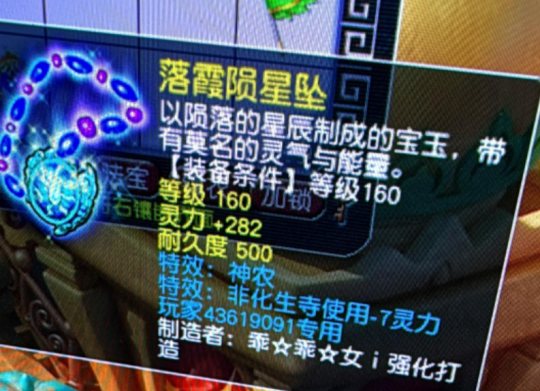 大家好!「烤鸭看西游」每天为你带来不一样的故事. 1、曲阜ZZM拍神马兽诀 曲阜孔庙服务器玩家ZZM的12技能“金蝉脱壳”净台猴子,成功拍上神马兽诀,顶掉了高级吸血。这下真是“天佑拐棍”,曲阜孔庙的宝宝质量又加强了。 2、282初灵神农神链出炉 曲阜孔庙服务器的一位化生寺玩家,近日鉴定出一条初灵高达282的160级项链,且附带神农特效。尽管存在“非化生寺使用-7灵力”的减益设定,但如此高的初灵依然堪称炸裂。据悉,这位老哥计划带号一同出售,目前尚不清楚号底子究竟如何。 3、160琴音法暴枪出如龙 一位玩家鉴定出了一把160级枪,伤害530,命中693,附加单属性敏捷46,还带有特技“琴音三叠”和法暴伤害蓝字2.18%,整体属性相当出色,唯一遗憾的是缺少了神佑特效。 4、150无级别妙法女衣值百万? 一位玩家在鉴定150级女衣时,收获了一件同时带有“无级别限制”和“妙法之护”的双蓝字装备,其防御属性也高达246点。 叶子猪梦幻西游玩家群:1群 325703083 (2000人),2群: 330102322 (千人);3群: 424986787 (游戏疑难解答);4群: 330518295 (商人物价);5群: 1063086037 (疑难解答);6群: 1045753197 (春心萌动);7群: 787195090 (活跃互动);8群: 720665628 (全民PK) [编辑:百晓生]