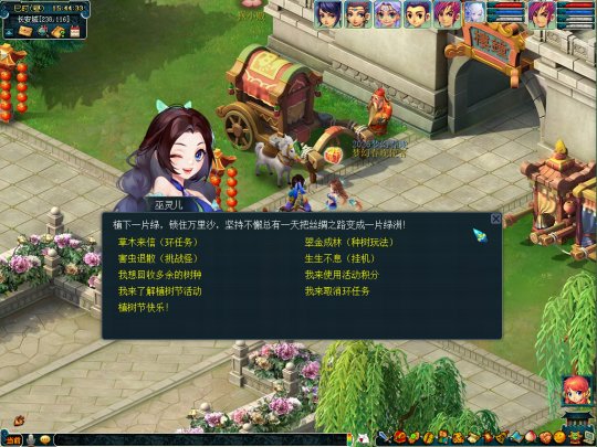 播绿还春盈四野,植树锁沙筑碧洲。2026植树节活动将于2026年3月3日12:00至3月4日12:00在部分服务器测试。并将于2026年3月10日12:00至3月17日12:00全服上线。 一、草木来信(环任务) 活动时间:2026年3月10日12:00-2026年3月17日12:00 参与条件:角色等级≥30级,队伍人数≥3人 玩法介绍 又是一年春,万物复苏,生机勃勃,看看三界居民在植树节期间有什么需要帮忙的。活动期间有概率遇到可获得大量“未筛选的树种”的“奇遇环”,快去收集你的种子吧! 重复领取式任务。玩家(角色等级≥30级,至少3人组队)可在长安城(241,116)巫灵儿处领取任务。 前80环为双倍奖励,81至140环为1.4倍奖励,141环后无奖励。队长每次成功带队完成一轮环任务时,均获得一次旋转队长奖励转盘的机会,可获得丰富的物品奖励! 部分任务会触发彩蛋,使用“变化之卷”形变成对应的模样可快速到达目标处! 特殊说明 1、任务不受双倍、精修时间影响,死亡计算为非正常死亡,原地复活无损失。若使用800*600、1024*768、1024*768(HD)分辨率、1280*960(HD)分辨率、全屏客户端或互通版参与活动,则经验、金钱和获得物品概率都将提升10%。 2、任务时限40分钟,可在植树节使者处取消任务,取消任务后3分钟内不能再次领取任务。