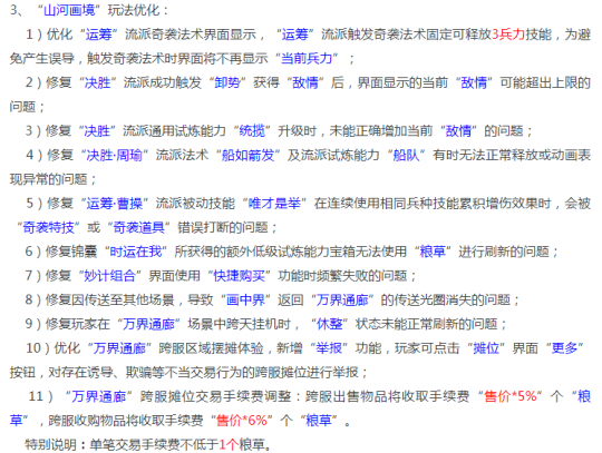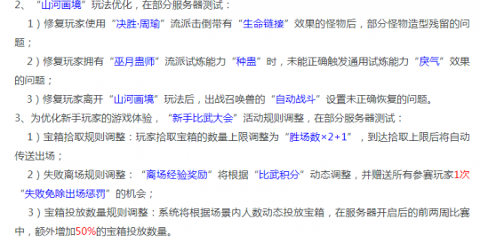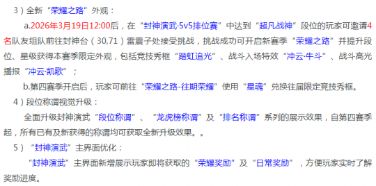 此物梦幻经,游戏随心听。 群雄逐鹿超级联赛第五赛季正式开启,可能大多数玩家并不会参与到这个联赛中,但是不妨碍参与赛事助威并领取奖励,一共6个组别,每个组别选择一支战队进行支持,每次支持消耗200体力,能够获取大量经验,还有概率获得魔诀、大五宝、特赦令牌和高级魔诀,关于新赛季选择哪几支战队进行支持,我会在后续文章中专门出一期推文教大家怎么选。 封神演武第四季开启,玩法会提供免费的临时符、变身卡、三级药,这次的奖励也进行了全新加码,奖池中将包含高级召唤兽内丹、特赦令牌和高级魔诀,奖池中的物品可以用胜利金币进行替换,说白了就是你可以通过不断获取胜利金币去将奖池中的物品全部替换成高魔诀然后再抽奖,确保自己必定获得高魔诀,就跟山河画境三国赛季一样。 现在官方还是非常鼓励玩家去参与各种竞技PK玩法的,奖励都在不停加码,建议喜好PK的玩家都去参与下。 封神演武第三赛季结束,相关积分和钥匙将会清空,玩家需及时兑换奖励,以免不必要的损失。 山河画境玩法优化,新赛季三国赛季已经被先锋玩家们开发的差不多了,想要学着怎么玩的可以网上多搜索下,特别是视频平台,直播教学和攻略都很多,个人建议新手玩家卡进阶16-20刷即可,成本相对较低,对召唤兽要求也没那么高,收益也挺可观。 个人空间认证审核功能迭代优化。 对孙小圣的各种姿态进行了优化。 以上服务器本周不开放转出功能。 植树节活动在部分服务器测试。 部分山河画境优化在部分服务器测试。 新手比武大会规则调整。 为提升体验,部分场景的NPC将增加对白及语音,在个别服务器测试。这个虽然是不错的正向优化,但是感觉现在的玩家对于这一块的体验要求并不高。 仓库设置优化,未来不要的仓库可以一次性多选并撤销了,现在一个一个撤销的确挺麻烦的。 装备开运、点化星位、符石合成功能界面迭代在部分服务器测试。丢弃高级魔诀需要二次确认在部分服务器测试。 这次的优化也是非常的多,对于本次维护公告你怎么看?咱们评论区见! 叶子猪梦幻西游玩家群:1群 325703083 (2000人),2群: 330102322 (千人);3群: 424986787 (游戏疑难解答);4群: 330518295 (商人物价);5群: 1063086037 (疑难解答);6群: 1045753197 (春心萌动);7群: 787195090 (活跃互动);8群: 720665628 (全民PK) [编辑:百晓生]