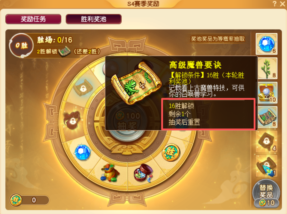 各位少侠,万众期待的“封神演武·第四赛季”已于2026年3月3日维护后正式开启。 新赛季、新挑战、新快乐,“封神演武·第四赛季”的奖励喜获全面升级,保准让各位少侠享受PK乐趣的同时还能感受到“名利双收”的成就感! 话不多说,下面让小帅为大家介绍“封神演武·第四赛季”的奖励升级情况吧! 【物品奖励迭代升级】 首先是各位少侠比较关心的物品奖励情况。“封神演武·第四赛季”延续了前三赛季的“每日奖励”机制,并新增了包含特赦令牌、高级魔兽要诀等珍稀物品奖励的“胜利奖池”! 各位少侠可消耗100枚“胜利金币”在“胜利奖池”进行等概率抽奖,以此获取“胜利奖池”中的随机物品。 值得一提的是,“胜利奖池”开启了“自主选择”的权限,让大家自己决定升级物品奖励,“种豆得豆、开心满满”,具体如下: 1.“胜利奖池”有什么?各位少侠说了算!使用10枚“胜利金币”可随机替换“胜利奖池”其中一件物品奖励。 2.当少侠们征战“封神演武”并积累2场和5场胜场时,可分别解锁“胜利奖池”中的低级魔兽要诀和高级召唤兽内丹。 3.当少侠们征战“封神演武”并积累8场和16场胜场时,可分别解锁替换列表中的特赦令牌和高级魔兽要诀。 需要注意的是,每使用100枚“胜利金币”进行转盘抽奖后,“胜利奖池”会进行重置。并且,替补列表中的各种物品奖励也有着数量限制。 说到这,大家一定很关心如何获取“胜利金币”吧!目前,获取“胜利金币”的途径有三种: 1.完成部分任务可直接获得“胜利金币” 2.每日奖励中新增“胜利金币”奖励,大家可自由选择“胜利金币”或物品奖励 3.战斗胜利后有机会获得“胜利金币” 最后小帅为大家介绍介绍“胜利奖池”的“幸运保底”和“幸运回响”两项机制,具体如下: ①幸运保底 对单个选中奖池物品进行替换时,33次以内将必定替换为金色奖品,37次以内将必定替换为高级魔兽要诀。 ②幸运回响 若替换结果与选中奖池物品相同,将立即获得20枚胜利金币。 温馨提示:大家不妨利用好这两项幸运机制,“认真统筹、合理替换”,将高级魔兽要诀从“胜利奖池”中领回家哦。 【荣誉奖励迭代升级】 熟悉“封神演武”的少侠都知道,“封神演武”的奖励号称“塞进包里巨实惠、穿戴身上巨有面”,主打一个“名利双收”!在“封神演武·第四赛季”,象征着“封神演武”荣耀的各类外观奖励同样让人眼前一亮! 首先是新增的“荣耀奖杯”,当我们累积进行20场“封神演武”的战斗(时长需超过5分钟)并达到翡翠分段后,即可领取赛季绝版外观奖励“荣耀奖杯”。“荣耀奖杯”可摆放在我们的房屋或庭院中,并会我们在本赛季的最高分段而自动升级。 试想一下,当我们将这枚华丽的“荣耀奖杯”放置在房屋或庭院的最显眼的位置,当亲朋好友上门拜访并表现出“羡煞旁人”的时候,那种油然而生的骄傲和自豪一定能瞬间拉满情绪价值! 除了新增的“荣耀奖杯”,“封神演武·第四赛季”的“段位称谓”、“龙虎榜称谓”和“排名称谓”也得到了全面升级! 新效果更夺目更璀璨,既是我们征战“封神演武”的证明,也是我们卓越实力的彰显!据坊间不完全统计,使用“封神演武”称谓特效的少侠,日常任务的“上车率”都获得了明显提升哦! 小帅总结时间:“封神演武”第四赛季的优化主要体现在“物品奖励”和“荣耀奖励”的全面迭代和升级上,目的是为了让大家感受到“名利双收”的极致情绪价值,让大家从“封神演武”中获得更多的快乐! 好啦,今天的推文就到这里,各位还有什么对“封神演武”的优化建议,一定要来评论区留言哦。 叶子猪梦幻西游玩家群:1群 325703083 (2000人),2群: 330102322 (千人);3群: 424986787 (游戏疑难解答);4群: 330518295 (商人物价);5群: 1063086037 (疑难解答);6群: 1045753197 (春心萌动);7群: 787195090 (活跃互动);8群: 720665628 (全民PK) [编辑:百晓生]