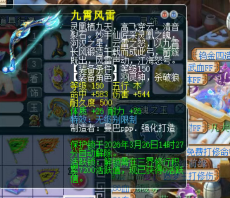 大家好!「烤鸭看西游」每天为你带来不一样的故事。 1、150级高伤无级别弓横扫三界 这把武器的基础属性相当炸裂:命中583、伤害544,计算初总伤已达738.3。更难得的是还附加了体质、耐力双加,只要打上伤害宝石,对于物理系和法系都有极高的成长空间。 2、120神佑伯牙斧头 近日,一位玩家晒出了自己精心熔炼的成果——一把120级神佑伯牙绝弦武器。 3、百万物理奇袭玉魄出土 这枚玉魄主属性为速度+12,下排双伤害+16,同时还携带了珍贵的奇袭法术2.2%?特效。伤害与速度的搭配能让物理系在保证输出的同时更快出手,而奇袭法术则进一步提升二次出手几率,堪称完美组合。 4、玩家鉴出150级不磨魔棒 对于喜欢挂机日常的玩家而言,高伤+永不磨损的组合堪称毕业神装。这把150级魔棒无论是给物理门派打图抓鬼,还是给法系当高伤武器,都能做到“一次打造,终身免修”。 叶子猪梦幻西游玩家群:1群 325703083 (2000人),2群: 330102322 (千人);3群: 424986787 (游戏疑难解答);4群: 330518295 (商人物价);5群: 1063086037 (疑难解答);6群: 1045753197 (春心萌动);7群: 787195090 (活跃互动);8群: 720665628 (全民PK) [编辑:百晓生]