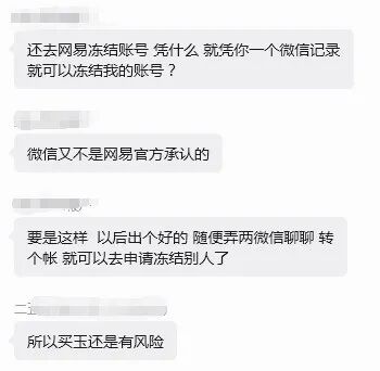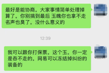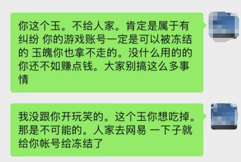 此物梦幻经,游戏随心听。 梦幻大瓜,买玉玩家找商人开玉,结果开出三封服战玉,预测价格百万起步,结果商人当面毁约,拒绝交付三封玉。 你们觉得这玉要得回来吗? 首先要搞清楚一件事,这次的交易是否存在正当性、合法性已经被保障性。 从聊天截图来看,卖玉商人毁约之后,应是中间人与之商讨,先是质问商人:“你是要跑路了吗?” 随后又表示:“这个玉如果不给买方,那么这肯定属于纠纷,你的游戏账号一定可以被冻结,这玉魄你也拿不走,与其如此不如大家好好商量,你再多拿点,玉交付给对方,大家别搞那么多事情出来。” “我没跟你开玩笑,这个玉你想吃掉,是不可能的,人家去网易那告你,立马就能冻结你的账号。” 商人则是轻蔑反问:“你是上来怪罪我的吗?” 大概的意思就是,这玉我吃定了!几百块就想买我百万级别的装备,做梦! 中间人还是希望能够协商:“这个事件完全可以继续协商,你别最后名声搞臭了,生意没了,玉也拿不走,这对你来说没有意义。” “我可以跟你打保票,这个玉你一定吞不走,网易可以冻结有纠纷的装备的。” 中间人还想进一步劝服商人,告诉他法治社会,不要动歪心思,结果对方已经把他拉黑,摆明了就是铁了心要把这玉吞下。 我也不经疑问,这玉能要的回来吗?在不经任何协议保护的情况下,开出百万级别的物品,谁能不心动?这可是纯纯的百万级利润,而不是流水。 群友玩家则是给了这样的答复,这个玉号主一定能拿到手,哪个买玉的老板一定得不到玉,因为这个线下交易,网易是不会理会的。 网易凭什么去冻结对方的账号,难道因为一个聊天记录,还是几百块的买玉转账?这些非网易平台的交易记录,怎么可能让网易去承认交易的合规性?如果都这样,以后出个好装备,随便弄点聊天记录、转个账,就把对方的账号冻结吗?怎么可能! 线下买玉本来就是高风险行为。 群友还分享了一个以前的事件,就是服战老板的琴音鞋子事件。管家上号扔装备,结果扔给了路人,随后去申诉也只是把鞋子冻结了3个月,最后也只是要到了联系方式让服战老板自己去协商。 结果路人压根没理会老板,而是在解冻后直接上架了藏宝阁,网易给出的解释是不知道你们是否存在线下交易。 这个事件的真实性不得而知,但是能给人透露的信息就是网易对于线下交易是不会给予保护的,给予保护就是鼓励,一个表明藏宝阁是唯一正规交易平台的商家,怎么会保障你的线下交易行为呢? 所以对于这个玉能否回到买家手上,很多玩家都是持有否定态度。也奉劝各位,线下交易有风险,还需多谨慎。 那么,如果线下购买任何物品前,签署书面交易协议,能否得到保障呢?请在评论区发表你的看法! 叶子猪梦幻西游玩家群:1群 325703083 (2000人),2群: 330102322 (千人);3群: 424986787 (游戏疑难解答);4群: 330518295 (商人物价);5群: 1063086037 (疑难解答);6群: 1045753197 (春心萌动);7群: 787195090 (活跃互动);8群: 720665628 (全民PK) [编辑:百晓生]