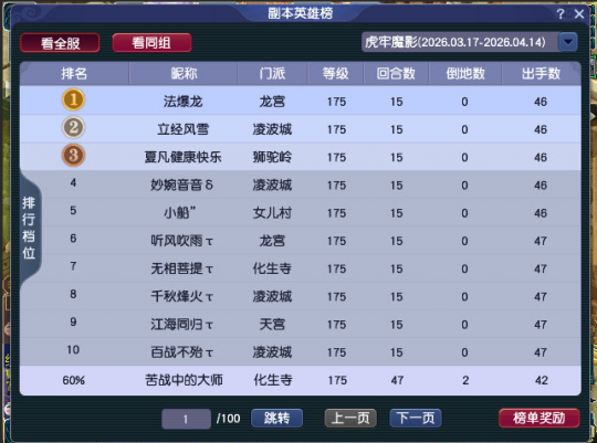 “虎牢魔影”是梦幻近期推出的竞速型副本,多攻队刷这副本都叫“拼刺刀”,今天笔者给大家测一下竞速模式的奖励。 竞速模式下,没有助战,不过原来那些助战也没有太大用处,可以视为两只攻宠+一个辅助,其中辅助的作用会略大一点,所以辅助在这场带个归元圣印,就能弥补推血量了。 战斗胜利后,可见奖励比普通模式略高一点。顺道补充一下二测的一些发现:怪物带驱鬼,蓄力怪被封中后会消耗气血立即挣脱封印。 从竞速榜单可见,175也是以多攻队为主的,榜单里的女儿有可能是力女儿。 物品奖励,忘记截图了,看另一组号,总价值量要比普通模式略高一点。 叶子猪梦幻西游玩家群:1群 325703083 (2000人),2群: 330102322 (千人);3群: 424986787 (游戏疑难解答);4群: 330518295 (商人物价);5群: 1063086037 (疑难解答);6群: 1045753197 (春心萌动);7群: 787195090 (活跃互动);8群: 720665628 (全民PK) [编辑:百晓生]