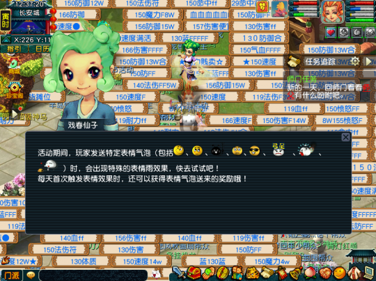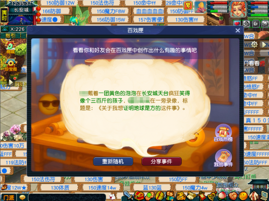 畅玩服愚人节活动来了,时间为2026年3月27日12:00至2026年4月2日12:00,大家可以在游戏中体验【百戏匣】、【表情贴贴乐】和【囧囧面具】玩法! 专题页链接:https://xyq.163.com/my/2026/yurenjie/ 创作趣味事件的百戏匣 活动期间,≥30级的少侠可以在长安城(226,120)找戏春仙子体验【百戏匣】玩法。在百戏匣玩法中,少侠可以选择一名好友加入事件角色池,并随机创作一些与好友的趣味事件。 趣味事件完成后,少侠可以分享给好友,让好友对事件进行再创作!绿色文本点选后可以选择【重新随机】生成其他文案,满意后选择“完成创作”即可。 【百戏匣】玩法有一个百戏热榜,里面收录了各种事件,有热度前50的事件,也有最新事件。 评价的人越多,事件热度越高。活动结束时,为每个服务器排在热榜前50的少侠发放限时称谓奖励。 每位少侠每天最多进行20次事件生成、10次事件再创作。评价事件需要消耗20点体力,体力不足无法进行事件评价。 每日首次生成、分享和评价故事时都可以获得奖励。 表情贴贴乐的表情雨 活动期间,≥30级的少侠在高频接收到特定表情时,会在主界面左下角触发【表情雨】彩蛋效果。每天首次触发表情雨时,还可以获得表情气泡送来的经验和储备金奖励。 需要注意的是,特定表情才能触发表情雨效果,包括#2、#17、#18、#24、#28、#101、#107、#109,而且表情雨的触发时间间隔为30分钟。 整蛊道具囧囧面具 活动期间,≥30级的少侠可以在长安城(226,120)找戏春仙子参加【反向猜拳】、【趣味答题】和【整蛊作战】三个考验。 第一个考验是【反向猜拳】,平时猜拳都是赢了才攻击对方,愚人节则是反过来,输了可以攻击对方,打对方两次即通关。 第二个考验是【趣味答题】,在40秒内答对3道题即可,若是答错或者超时,可以重新答题,没有损失。 第三个考验是【整蛊作战】,切入战斗后,根据怪物的提示猜出谁是真的。比如大海龟,它说在东海湾爬来爬去,那就是真的,其他三个提示都不对。猜对后,将对应的怪物击飞即可通关。 完成全部考验后,少侠可以领取奖励道具【囧囧面具】,对他人进行整蛊! 每次使用【囧囧面具】整蛊他人后,可以获得整蛊灵气。 灵气积累到一定值,少侠还可以找戏春仙子兑换限时锦衣头饰【囧囧面具】和其他奖励。少侠每天最多可以使用【囧囧面具】对他人进行3次整蛊。 这次的愚人节活动玩法均是单人互动玩法,各位少侠上线的时候可以整蛊一下好友,让他来点意外惊喜,增加一下游戏的趣味性。 叶子猪梦幻西游玩家群:1群 325703083 (2000人),2群: 330102322 (千人);3群: 424986787 (游戏疑难解答);4群: 330518295 (商人物价);5群: 1063086037 (疑难解答);6群: 1045753197 (春心萌动);7群: 787195090 (活跃互动);8群: 720665628 (全民PK) [编辑:百晓生]
