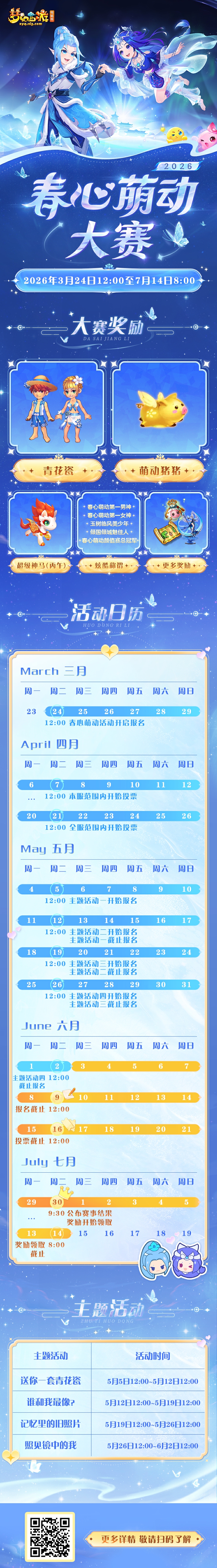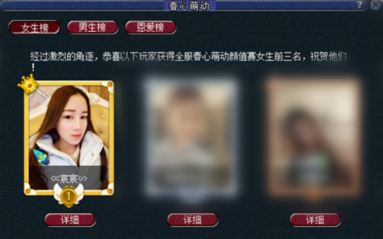 2026“春心萌动”大赛已于2026年3月24日12:00正式拉开帷幕! 作为梦幻玩家每年最期待的颜值盛宴,过去10届比赛里,涌现了一大批神仙玩家,他们凭颜值和实力圈粉无数,成为“春心萌动”大赛史上经典的记忆!今天小编就带大家重温这些名场面,看看有没有你熟悉的明星玩家。 女生颜值赛明星选手 女生组的较量从来都是“颜值暴击”现场,从首届女神到三连冠女王,每一位冠军都自带高光,快来看看有没有你pick过的她! 玩家昵称:萌小奶ι(曾用名:小小奶ι、小奶呀ι) 服务器:青花瓷 “春心萌动”史上的传奇人物——连续3年(2022-2024)斩获女生组冠军,创下“三连冠”伟业,直接被玩家尊称为“萌动女王”,人气断层领先! 2022年她以3004002票夺冠,2023年票数飙升至3815666票,2024年再度卫冕,一步步用实力坐稳女王宝座。妥妥的梦幻颜值天花板,也是春心萌动史上第一个达成三连冠的玩家,无人能超越! 玩家昵称:碎影无尽灭δ 服务器:曲阜孔庙 「碎影无尽灭δ」玩家在2025年凭5127874票成功登顶,更通过夺冠奖励,成为全服第一个拥有青花瓷锦衣的九黎城角色!除此之外,还是武神坛巅峰赛001号纯金冠军证书的拥有者,助力曲阜孔庙拿下武神坛八连冠,颜值与实力双在线,妥妥的梦幻全能大神! 玩家昵称:∝宸宸∽ 服务器:再续前缘 提起春心萌动女生组,就不能不提这位初代女神!作为首届“春心萌动”女生组冠军,「∝宸宸∽」以114万票的成绩,成为梦幻史上第一位“萌动女神”。 「∝宸宸∽」自2007年接触梦幻西游,后来成为梦幻主播,凭着赛事积累的超高人气和圈粉的直播风格,成为早期梦幻玩家圈的标志性女神,哪怕多年过去,依然被老玩家们念念不忘。