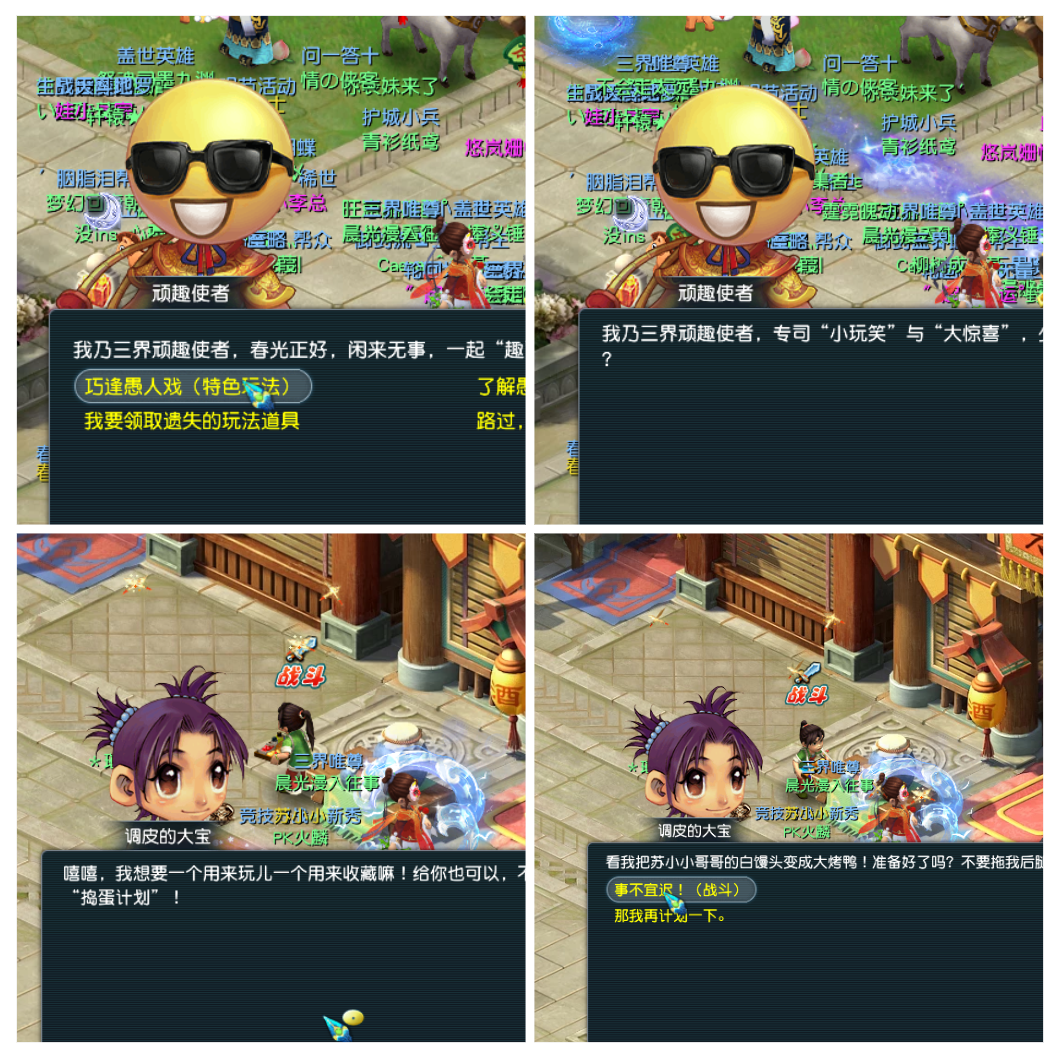 2026年3月31日12:00,梦幻西游时间服2026愚人节、清明节活动已正式登陆全服! 本次愚人节有一大特色玩法,即“巧逢愚人戏”。各位少侠只需花费3-5分钟,即可获取本次愚人节活动送出的限时“限量锦衣”——趣味表情头套! 各位少侠只要戴上“表情头套”参与清明节环任务、小副本的战斗,就可以触发隐藏趣味彩蛋哦~下面,小编就带各位少侠详细了解一下本次愚人节活动的特色玩法吧! 一、表情头套获取方式 本次愚人节活动的持续时间为2026年3月31日12:00至2026年4月3日12:00,只需角色等级≥50级即可在玩趣使者(长安城)处开启单人任务。 接取任务后,需前往调皮的大宝(长安城430,55)处完成对话,之后进入与苏小小(长安城430,55)的战斗。 本场战斗虽然有5个怪物,但怪物基本没有伤害(打过来都只有1滴血哦),清掉除主怪之外的小怪后,“白面馒头”会变成“美味烤鸭”,怪物逃跑后战斗结束。战斗结束完成任务后,各位少侠就可获得道具“表情玩具”和限时称谓“捣蛋大师”(有效期30天)。 需要注意的是,表情道具过期时间为2026年4月3日,如果不慎丢失了“表情玩具”,也可在“顽趣使者”处选择“我来领取遗失的玩法道具”重新获取,各位少侠一定要留意哦! 二、表情头套使用方式 鼠标右键点击“表情道具”可开启选项菜单,各位少侠可以根据自身喜好佩戴“害羞”“得意”“墨镜”“惊讶”等4个表情头套,每个头套均有独特的“彩蛋效果”。 “表情头套”每日仅可使用1次,持续时间为2小时(可随时取消),穿戴效果如上图所示。若想切换其他“表情头套”穿戴体验,就需要等待第二天啦~ 除此之外,穿戴头套后,好友栏界面的头像也会发生变化哦! 三、“暴击”必定触发愚人节头套彩蛋 穿戴头套的少侠在清明节活动的环任务和小副本的战斗中,只要触发暴击伤害(物理暴击、法术暴击、固伤暴击),就能在伤害数字前增加穿戴头套的表情,该表情全队可见,非常有趣。 各位少侠赶紧戴上你的个性头套,在三界中留下属于你的搞怪瞬间吧~ 叶子猪梦幻西游玩家群:1群 325703083 (2000人),2群: 330102322 (千人);3群: 424986787 (游戏疑难解答);4群: 330518295 (商人物价);5群: 1063086037 (疑难解答);6群: 1045753197 (春心萌动);7群: 787195090 (活跃互动);8群: 720665628 (全民PK) [编辑:莫听雨]