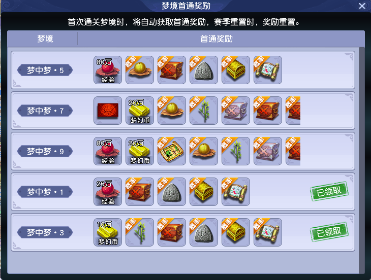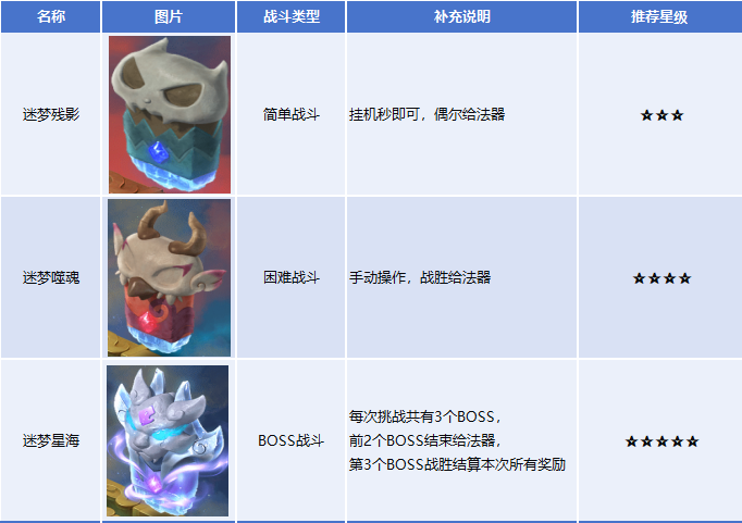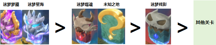 喜欢单人玩法、沉浸式与怪物斗智斗勇的少侠们!快来看看,“梦魇幻境2026第2赛季”已全服上线。本赛季除保留丰富的奖励外,还新增了通关评分和榜单排名,排行前50名的少侠将获得酷炫限时特效称谓。接下来,跟小帅一同探索新赛季如何轻松通关吧! 参与条件:服务器开服时间≥31天,角色等级≥50级的单人玩家。 开启方式:前往长安城(450,217)寻找绘梦师,消耗10仙玉或400点副本积分开启玩法。 玩法设定:单人参与并召唤助战NPC组队挑战,进入梦境后,未飞升角色与助战将被设置为 145 级,召唤兽为 150 级;已飞升角色与助战统一为 155 级,召唤兽 160 级。角色只继承部分装备属性(宝石、特技和套装效果等),不继承修炼、临时符、符石、奇经八脉。 玩法奖励:每周首次体验可获得全额奖励;第2、3次奖励衰减且无物品奖励。赛季内首次通关梦中梦1、3、5、7、9层时,可获得对应首通奖励。 注意:每周内重复挑战,经验、金钱将会衰减(最多衰减至0),且不再获得物品;每周至多解锁2个难度。 本赛季新增通关评分及对应排行榜,赛季排行榜第1名、第2至3名、第4至10名、第11至50名,将分别获得有效期90天的特效称谓。 1、确保灵根等级>梦中梦难度 每通关一层可获梦境灵气,灵气可用于提升灵根等级。灵根等级影响队伍成员的气血、防御、伤害等属性。若灵根等级 2、助战阵容首选212万金油阵容 阵容推荐:普陀山+化生寺+2物理+1法系/封系,少侠可根据自身门派,补齐上述缺失位置。 3、关卡之门的选择 ① 战斗关卡 ② 非战斗关卡 高星优选:两个5星之门不会同时出现,出现以下任意一个时优先选择。 4星双门:当迷梦噬魂和嬉戏之森两个4星之门同时出现时,优先选择嬉戏之森。该关卡主要是通关小游戏,通关后可随机给低级法器升级,提升整体战力。 3星及以下:优先选迷梦残影;若灵根等级和梦中梦级别相同,可选援助之地。灵根等级不高时,选择援助之地可邀请额外助战防翻车。 与通关思路不同,冲排行榜的核心逻辑是用更全的阵容、更低的法器品质,高效通关强度更高的关卡。通俗的说法就是,实力一般但能更快战胜更强的敌人,这样得分高。 赛季榜评分主要与通关时长、关卡类型、法器品质、梦中梦等级和阵容相关。评分关键维度如下: ①通关时间:通关耗时越短,评分越高; ②关卡类型:关卡难度越高,用低级法器这种对通关帮助低的方式通关,评分越高; ③法器类型:评分只计算低级法器,所以在必须有选择高级、低级法器的关卡里,要选择低级法器; ④额外加成:梦中梦等级越高评分越高;初始阵容涵盖5门、队员类型覆盖4种类型,均有评分加成。 关卡优先级:以迷梦残影(50分)、迷梦噬魂(100分)、迷梦星海(200分)、迷梦梦魇(800分)、未知之地(200分)5类关卡为主,优先选高分关卡。 不同关卡同时出现时的选择策略: ①2个BOSS类型关卡每次出现均为唯一必选,其他类型关卡需重新排优先级; ②迷梦噬魂可优先选择,既能获得关卡评分,又能获得法器评分; ③未知之地可优选选择,虽可能不会获得法器,通过收益低,但是评分高; ④嬉戏之森、集市之地需要避开,这类关卡通过收益高,但得分低,与其它门一同出现时应避开。 其他加分:如果在梦境深处遇到了新丁,战胜并得到了新丁的祝福也可获100分。 1、过关思路 梦中梦1~5层采取以攻为守的过关思路,确保普陀+化生双辅助保生存,其余选强力输出;法器优先暴击、伤害类,最大化输出效率。 2、三大BOSS打法:天道使者、后裔魂魄和神秘女子 天道使者:共2只,输出极高,需保证两只怪物被击倒的回合数相差<2。否则存活者会满血复活队友。 后裔魂魄:召唤 9 只小怪后进入无敌连体状态。优先集火红色恶念,既可清小怪,又能同步扣除主怪血量。 神秘女子:奇数回合主怪会群秒,并在回合结束召唤9个分身;偶数回合分身小怪会平砍让人中毒(固定扣血)。梦中梦等级较低时,直接锁定主怪群秒;当梦中梦等级较高时,优先保生存。 通关与冲排行榜思路存在差异。在灵根等级能跟上梦中梦等级的前提下,前期以攻为守、堆伤害快速通关。想冲击排行榜的少侠,可将每周3次挑战次数拉满,抢先解锁高阶难度,再结合竞速通关+低级法器堆分+优选高评分关卡上分。 叶子猪梦幻西游玩家群:1群 325703083 (2000人),2群: 330102322 (千人);3群: 424986787 (游戏疑难解答);4群: 330518295 (商人物价);5群: 1063086037 (疑难解答);6群: 1045753197 (春心萌动);7群: 787195090 (活跃互动);8群: 720665628 (全民PK) [编辑:莫听雨]