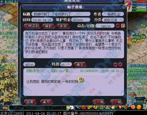 目前本文受害者已经被南天门服战队伍强杀N次,受害者担心连累朋友决定离开08。 |