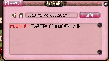 她又说我扣了 .之前说我不给旗子扣 .我总不能让自己徒弟瞧不起吧 . 所以我就给了她20W 钱一给他 就马上解除了师傅 下线了 .当时的心情就觉得好笑 . 难道是我做错了吗 . 我一直不觉得是他骗了我 .而是对这个师傅不满意才这样的 更多游戏资讯请访问叶子猪游戏资讯中心:http://news.yzz.cn/ [编辑:紫心怡]