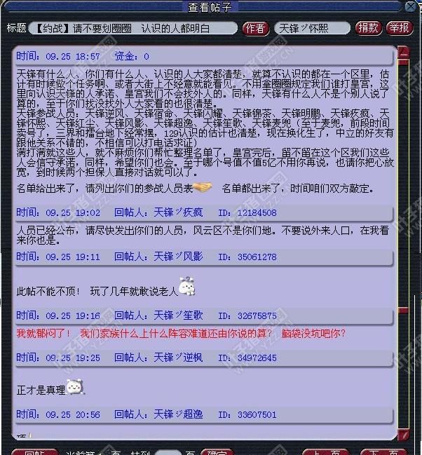 此事源于区内129大爷之间的矛盾,并于上周日比武时将矛盾升级,就在几天前双方已经在皇宫激战两局,各赢一场。但皇宫事后,双方战事并未平息,下面请看详细内容。