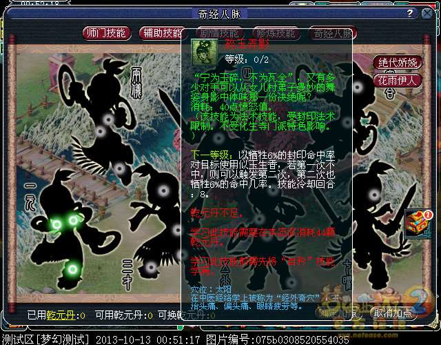 梦幻西游2测试区一手资料 女儿奇经八脉修改