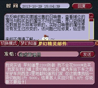 玩家在摆摊的摊位买到的BB比显示出来的防御少了100,客服查证之后属于口袋版摆摊bug,玩家觉得自己是冲着2300防御而买,却只有2200防御,而官方也承认这是系统的bug,于是玩家想索取一定赔偿。