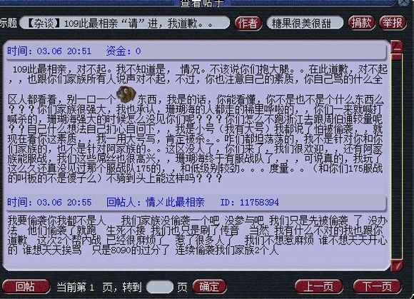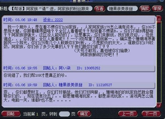 相关八卦:梦幻西游2没有飞行坐骑还不能挖宝图了?GM各种扯皮 首先申明本人并非谁谁谁的小号,只是珊瑚海开区就在玩一个骨灰级玩家,关注一下事态的发展。看了8090帮派的帖子,也看了千龙万凤阁的帖子,还看了很多伙伴的回复,有一丝丝的感想,半夜睡不着,发表一下自己的感慨,我是女生,经不住大家的谩骂,觉得有道理就回一下,没道理就当你没有看过,小女子在此谢谢大家的关注!万一言语得罪了哪边,我害怕被追杀,所以我也不发自己的游戏ID了,请见谅! 以下仅仅是我知道的一些关于阿家族情况,没有针对性! 事态真相一: 阿家族转区过来,开始和8090的霸天虎的矛盾应该是从69小号开始的,两个69的妹妹擂台产生矛盾,69矜持引蝶的找了霸天虎和阿义,一边是刚转过来的69落尘不认识任何大号,由她的姐姐找到了笨笨家的人,经过协调,此事就此作罢,后来阿义和笨笨家的念宠结婚,自然而然的倒戈落尘。或许这就是霸天虎和阿义矛盾的开始吧! 事态真相二: 至于和大水哥的矛盾是因为买帮产生的矛盾,具体内幕情况小女子不是很了解,只是知道先钱还是先帮的问题产生了纷争,大水哥要求先钱,年后给帮,阿家族觉得遇到了骗子,没有同意,就在三界说大水哥是骗子,帖子我已经找不到了请见谅。大水哥觉得自己很冤枉,也在三界发了一个帖子,说年后要发一个1000W的帖子追讨阿家族,年后真的发了1000W的说要杀到阿家族道歉为止! 事态真相三: 由于买不到合适的帮派,阿家族决定自己建帮,也就是现在的千龙万凤阁,二级帮的时候就拿到了帮战第一,三级帮的时候拿了长安的特产,我个人感觉因为他们帮170以上的队伍比较多,清小队速度快,实力蛮强的,别的帮确实有些差距。 帮主阿乐和副帮主阿义经常在线拉帮战队伍,招募帮战人员,转区过来的没有帮派的闲散人员,语气是很犀利霸气,甚至有些嚣张,这样以来得罪了很多珊瑚海的原住民。加上大水哥买了一个DT号开始追杀千龙万凤阁的商人,青龙小号,从此,802号帮就不太平了。(我有一个朋友是专门刷青龙的赚钱小号,为了赚点青龙奖励去了802号帮) 事态真相四: 也就是最近闹得最凶的关于区霸的焦点了?到底谁是区霸呢?我不知道,因为各持一词,公说公有理,婆说婆有理。自从珊瑚海成了三年老区,好多大号都转走了,放眼望去,还真是没有几个175的原住民了,阿家族都是175的满级号,转来之后做事风格高调,没事就喜欢喊别人HG生死,我个人觉得也是无可厚非的,因为人家钱花到了,嚣张一下也没什么大不了的。(还有我个人比较喜欢看HG生死,没事我还喜欢去YY6638分裂频道溜达一圈,呵呵,没有给6638做广告的意思哦)。 话说有一天在擂台,阿乐想拉拢一个叫牛郎的刚转区过来的MW进帮,谁曾想,这个牛郎是8090帮派谁的朋友,转区过来就是找兄弟来了,然后阿乐和8090的帮主发生了口角,自认而然的邀请HG生死。8090的帮主对抗上帝也不含糊,果断接起,谁曾想技不如人,两场连败。在比试的同时,阿乐又邀请群生死,对方没有应战,结束后在三界发了帖子(帖子我又找不到了,对不起。) 时隔没有 1小时吧,8090的一个叫傻逼的天宫,在千龙万凤阁的青龙堂杀了一个145的盘丝,当时那个MM在跑青龙,再后来傻逼又被175的狮驼阿逆偷袭致死,然后两个帮派的战斗就开始了。(问我为什么知道的这么详细,因为当时HG生死的时候我在千龙万凤阁的YY,听他们讲如何打,不要拍砖,帖子开头我就说了,我和两边的人都认识。) 2年前我也经历过两个帮派的敌对,到最后受伤的总是无辜的小号,也曾经被威胁,退帮就不杀,虽然我乃一届女流,但是江湖道义,我还是知道的,就这样被杀了N次,那经验掉的我这个心疼啊。 个人浅谈: 所谓有人的地方就是江湖,是江湖就有争战,我不会玩别的游戏,只会玩梦幻,我一直都觉得幻梦西游就是一个浓缩的社会,这里有欢笑也有悲伤,有真诚也有欺骗,有花几十万人民币玩一个牛B的号,也有老百姓抓抓鬼,赚点卡,这都不影响游戏给我们带来的乐趣。 两边的帖子都各持一词,明眼的人应该能看出来,自己发的帖子都是向着自己这边的,两边发的图片也都是自己如何被偷袭,博同情。为了声援,不惜开一堆小号,刷个三界,骂爹操娘的,有意思吗? 我嘞个去去去,怎么写了这么多,突然觉得自己也是无聊之至了,和我有毛线关系啊。我刷自己的经验,玩自己的游戏,自己开心就好,有点多管闲事了,呵呵。 致珊瑚海我认识的好伙伴们,开心快乐的游戏,幸福美满的生活,吃嘛嘛香,身体嘣棒!