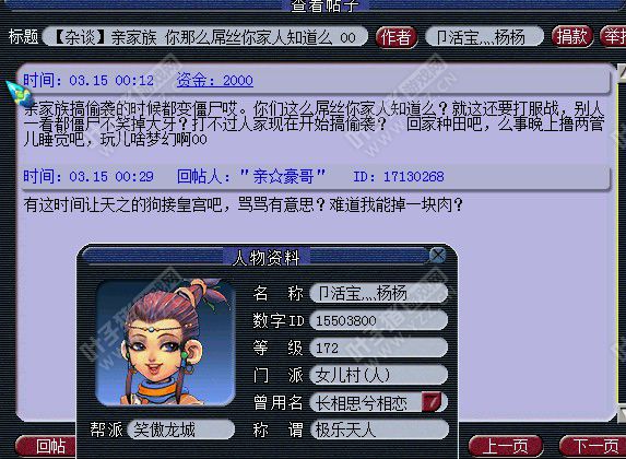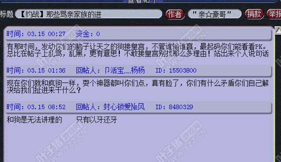 相关八卦:抓鬼见挂机大爷 梦幻西游2玩家怒起而杀之 本文只代表玩家观点,不代表叶子猪观点。 雁门关一号帮,精英联盟,在过年的时候,皇宫和天之帮打,据说输了五亿不给钱,无论是皇宫,帮战,还是服战选拔,精英帮只赢了一场,明的玩不过来他们就玩暗的,他们屠杀天之帮无辜帮众,最后和解。但最近烽烟又起,世界之窗服战大唐亲豪哥来到了雁门关,给精英帮亲家族做后台,他们叫天之的皇宫,天之帮的服战队员因为没有回帖,他们就开始屠杀无辜帮众。下面给大家发几张图 精英帮都被这些人搞坏了,你和某些人有矛盾,就杀他们,何必牵扯无辜的帮众呢?从很早以前,你们和鼓楼的寒冰做对,之前和天之做对,你们赢过几次? 精英帮内都有很多人骂你们了,他们都是五台山的老人,在精英呆了很多年的,之所以不走,就是因为对精英有感情,你们这些人,为了个人利益,偷袭无辜帮众。 帖子上那人说的好,你们到处给帮派树立敌对,让精英处在了一个非常危险的边缘,你们个人有敌对就罢了,还要牵扯无辜的人,难道这就是世界之窗服战团队给大家展示的精彩一面吗? 因为时间紧张,后面我会给大家发更多图片,揭露精英亲家族为了个人利益而牵扯无辜人的更多内幕,做人要厚道,不能为了个人利益,牵扯天之和精英许多无辜的人,我觉得这种人是最可恶的。 上图是在今年2月份天之和精英互相屠杀后飞扬发的帖子,他不想连累无辜帮众,那么最近又自己开始打自己了? 补充一点啊,据说打起来的原因是,天之帮服战打乙组,请了战神,精英认为那样丢人,就要求和天之的皇宫,天之的没有回帖,就开始了屠帮。 呵呵 这种人,可笑吗? 人家打服战关你啥事,呵呵,逗13一群! 持续更新,揭露雁门关精英联盟帮派亲家族,天之不接皇宫,他们就开始屠杀无辜帮众,不仅天之帮的,其他帮的也被他们杀了,继续上图,不解释 当然,也有精英的无辜小号被杀了