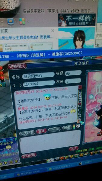 我华南逍遥城的!笑死我了!小号组一队人抓鬼!四个男的一个女的!那女的老公加了我!叫我不要欺负他老婆!