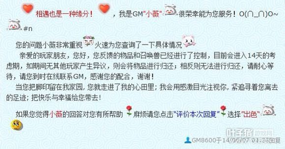 终于打通了,咨询了一下。已经确定 2只狂暴 一个衣服,一个元身。已经被梦幻回收了。正在控制!存储在梦幻那里,所以应该不担心他会把我元身打了什么的。等14天后就可以返回!感谢各位