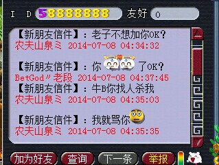 如题,先介绍一下么,很少发帖,梦幻陆陆续续玩了10年了,从学生党到上班族,下班休息时间娱乐娱乐,平时和区里玩家没有什么摩擦,今天终于踩到狗尾巴了,疯狗无限来袭,都是之前的服战号,不过老段你给我看清楚,服战怎么了,人民币战士怎么了,叔就是不鸟你,邪不胜正,想玩我陪你玩。 以下是和段狗斗智斗勇过程,不定时更新,欢迎收藏,另外补充一下,几年前他们这个号和橘子也是耗了一年多,我一直在看,当时特别不理解橘子,现在明白,狗即使装上獠牙,依然是狗,服战了,牛逼了,想杀谁就杀谁,呵呵,我去年买了个表 事情摩擦从昨天晚上半夜1点开始,本人当时师门刷完准备睡觉,看到有人开个天火之殇副本,随手一点加了副本,团长段狗也接收了,于是就等着刷副本,等副本要开了,段狗自己开的5个号发现有个五庄没有加进来,加错人了,我问他怎么办,他想了大概一分钟,说五庄不刷了,带上你,我说好的。 两分钟之后他直接转交队长给我,说让我带,他给五庄刷师门,因为我实在很少刷这个副本,就说不会带啊,然后段狗就直接给我踢出队开骂,加进来不带队要你鸟用,滚远一点,老子4 个人一样刷。我去你妈了个逼的,我可以不刷这个副本,或者你说你实在忙,我慢慢带队也行,我刚说不会带就直接开骂,你算个几把东西?你妈说她不会玩梦幻西游你还直接脱裤子日她么?畜生一个,上图 |