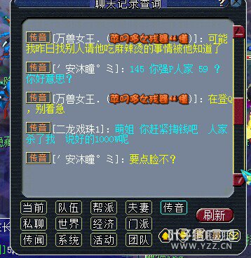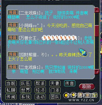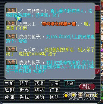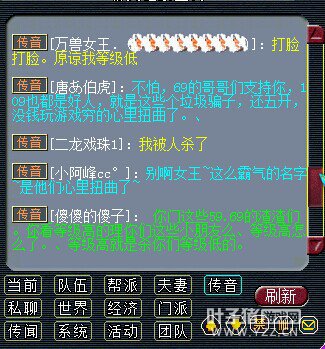 相关文章:龙拳神木首席竞选起争端:皇宫搞起来了 讲述一下将军区的传音大战。 先前的找不到了,起因是一个145的高级号杀了一个59的低级号。 低级号挺出名的,我来三天,天天见59发传音带小号鬼。 原谅我这么无聊八卦,下面开始上图。 刚被强P后的传音~~,直接1000万收人头带图。 原来是带熊孩子抓鬼卖萌被杀了。 然后另外一个猪脚粗线了。就是那个叫二龙戏珠1的。貌似是这货被人杀了一次了。 这个时候59妹纸的朋友看不过去了。开始传音搞起。 另外一名大爷粗线了。 又一位69的大爷表示支持了。然后二龙戏珠被人杀了。 看来是59的大爷说的话没算数啊。 原来这个59的妹纸还没成年的。 有个大爷看不惯了直接怒怼59、69的大爷了。大爷表示很无奈。 看来还是很多正义的大爷的。毕竟无辜被杀肯定是很无奈的。 那个145的给人杀了居然59的妹纸没给钱了。 原来是Q都没加就先杀了这个145的了。大爷开始不认账了。 其它人看不惯了。59事真多。谁给你们的勇气? 三石表示都看不过去了。叫他们赶紧传音刷起来。妹纸直接叫人来钱庄拿钱了。 第一次玩这个游戏还被整哭了。哎,卖萌也不容易啊。这年头好人也难做。能怪谁?要怪就怪网易的传音吧。 [编辑:asd_眷恋]