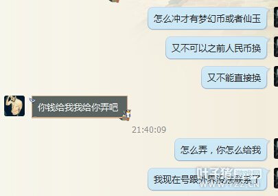 下午打副本,好友把它的凤凰借给我用,说借我几天。 结果刚刚被关进苦行虚空了,说是涉嫌盗号,被找回了,找回的不是召唤兽,是它的装备。 这时,进了苦行的我需要接受系统的惩罚,需要交1000仙玉保释金。 由于我不懂,所以请教朋友。 这时候朋友说,他有办法。 让我给他打钱,打到他银行卡上,然后他用银行卡给我弄仙玉! 这时候,心生怀疑。想问下他怎么冲,然后朋友又含糊其辞,只是一味的让我打钱! 这时候,我就更加怀疑了。通过咨询,确认了朋友想骗我,幸好机智没有上当。 最后小编说几句。当自己号被关入苦行的时候,可以通过申述的方式与GM取得联系,并保存相关的截图作为证据。千万别私自相信他人帮忙,更别私自汇钱以免照成损失。 [编辑:夏大雨]