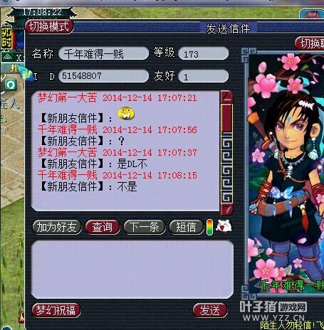 这是今天要偷袭的人,第一次带错BB,那个豹子是挂机用的,速度慢,伤害低。结果让他跑了。 第二次是水封严重,缩地尺了。 第三次终于抓到,睡杀不解释…… 结果又劫狱出去,那就来第四次吧。 |