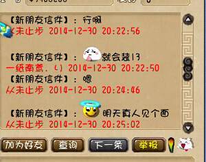 拒绝陌生了,一个劲说,有些难听的就不截图了,楼主气不过,就发了两个传音,之后他就下了!