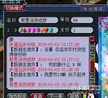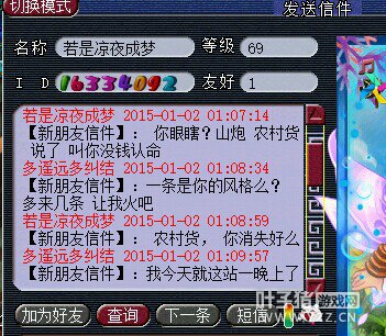 事情是这样的,刚刚上号签到无聊了就跑去擂台看打架。光看打架有点无聊吧,我就组了个队,刚组上一个155的就进队来,一下就加上他我的队伍就强大了。然后顺手一点吧就点着我们的主角了。杀完后一直被他点了好几次,我就问他怎么了,他就说我加个155打图号在擂台找存在感来了,然后就开骂了。 传音骂我和那155DT的图忘记截图了#124 然后那大哥就生气了啊,想杀他啊。怎么办?影蛊ing!找到了,原来土豪去押镖了,是押镖啊!土豪押镖是点技能还是点修呢? 又扯远了,那大哥就去国境等着他了 土豪一进战斗就大声喊出他带有3E在身上哦!!!3E啊!!!带着3E押镖的我还是头一次看到。最后土豪说了无所谓。多大气的人,做人就要这样大气。